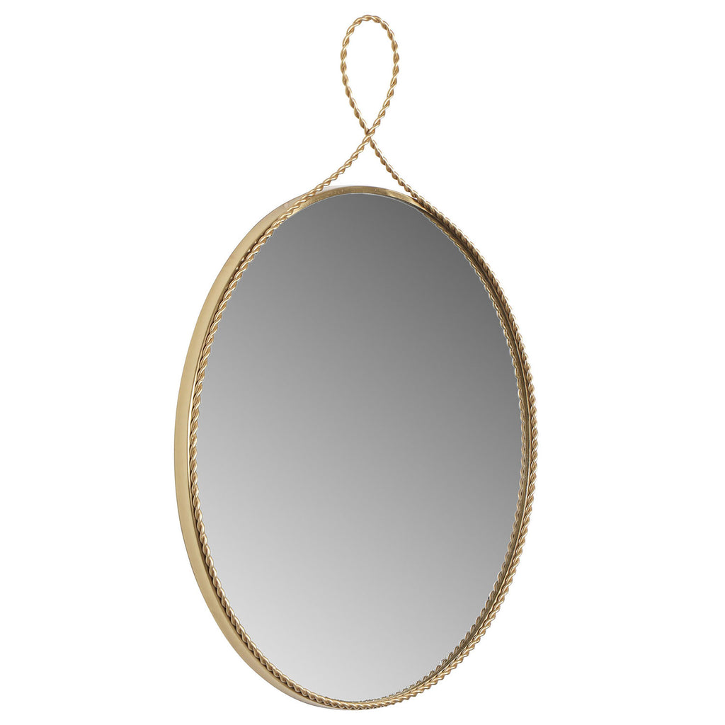 Introducing the Ravina Braided Brass Wall Mirror, available in both round and oval shapes. These slim, ornate mirrors feature a braided brass trim that adds a layer of texture and intrigue to a delightfully understated silhouette. Perfectly sized for bedrooms, vanities, entryways, and bathrooms, each mirror is crafted from solid metal with a brass finish and offers versatile mounting options: hang effortlessly from a looped top or opt for a seamless look with the cleat system on the back.