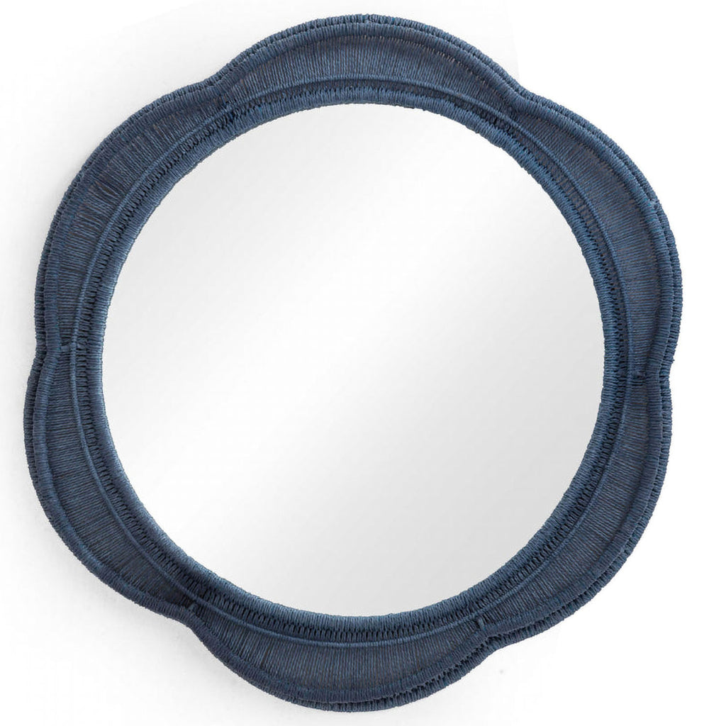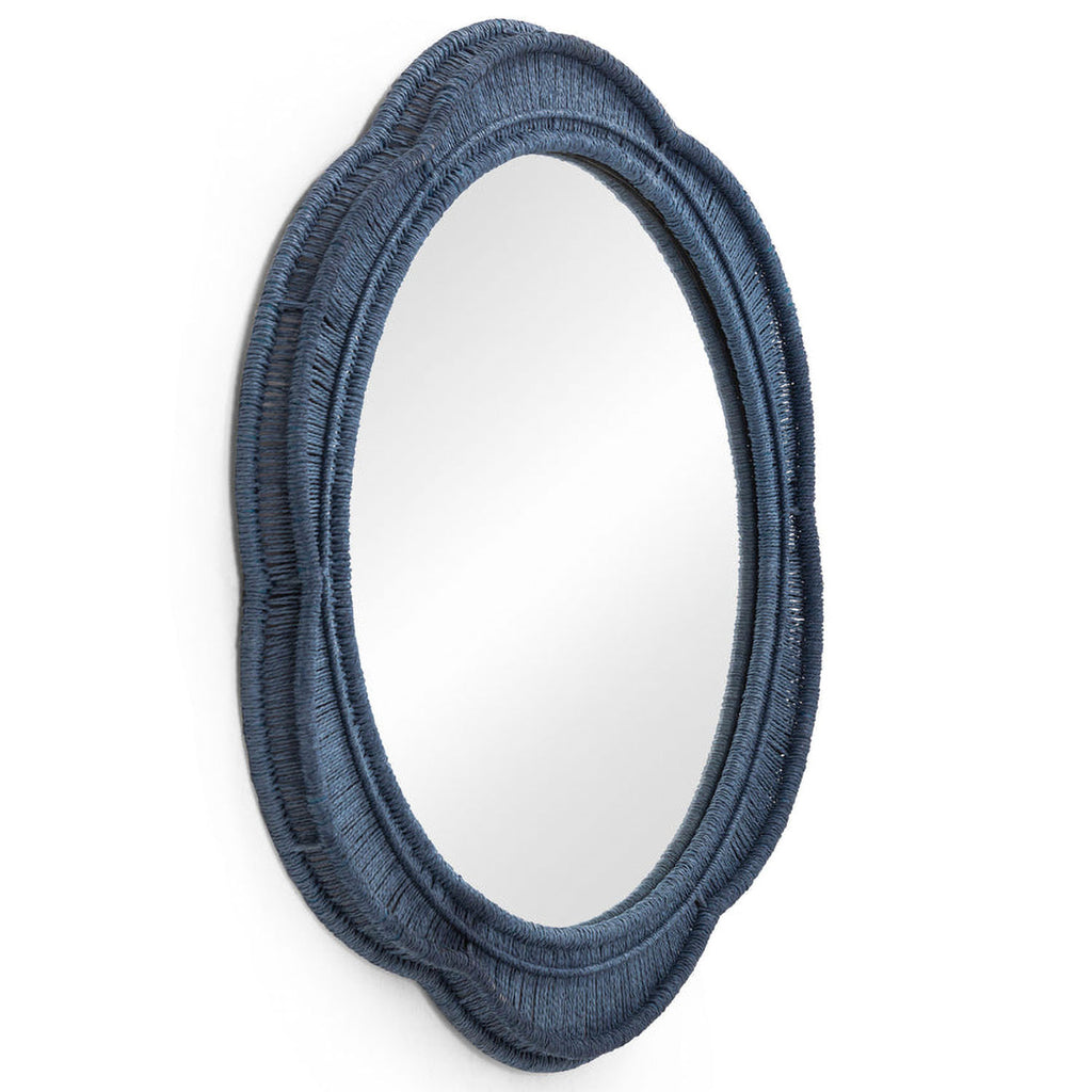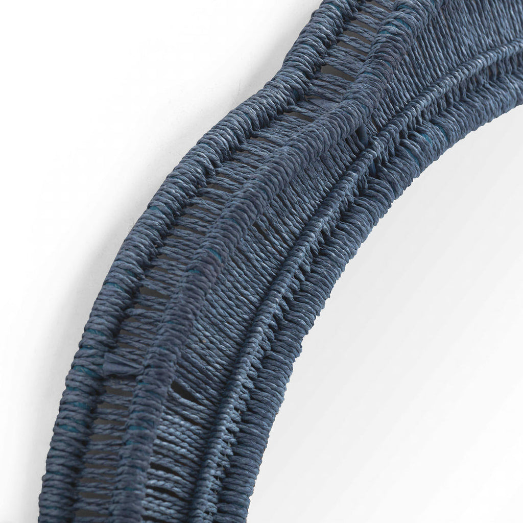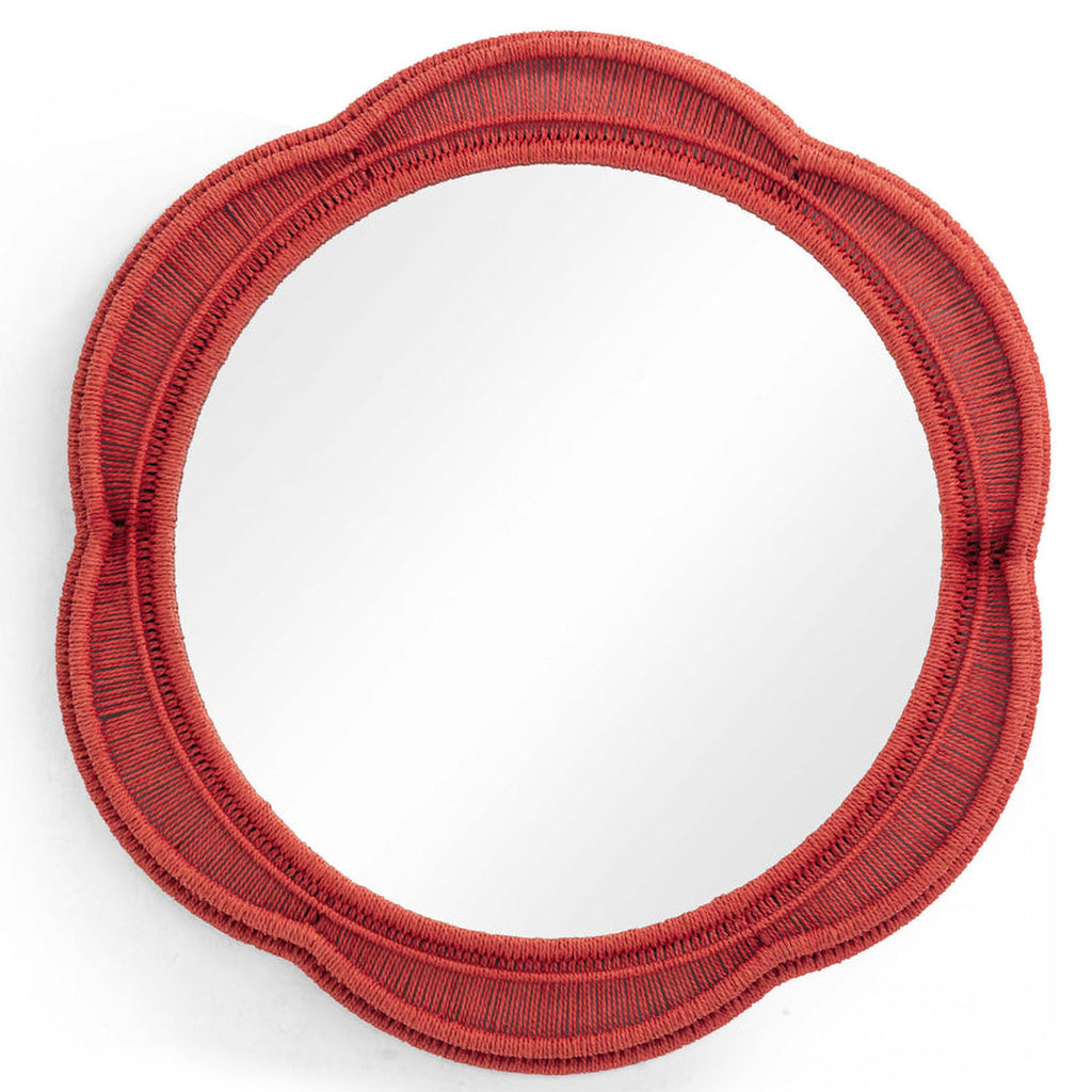The Zeva Wall Mirror is a striking blend of artistry and bold color, featuring a hand-wrapped spun paper cord frame in green, red, or blue. At 20", it is the perfect statement piece, adding depth and drama to any space.