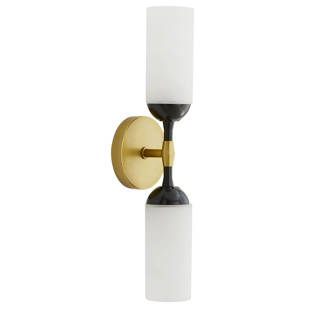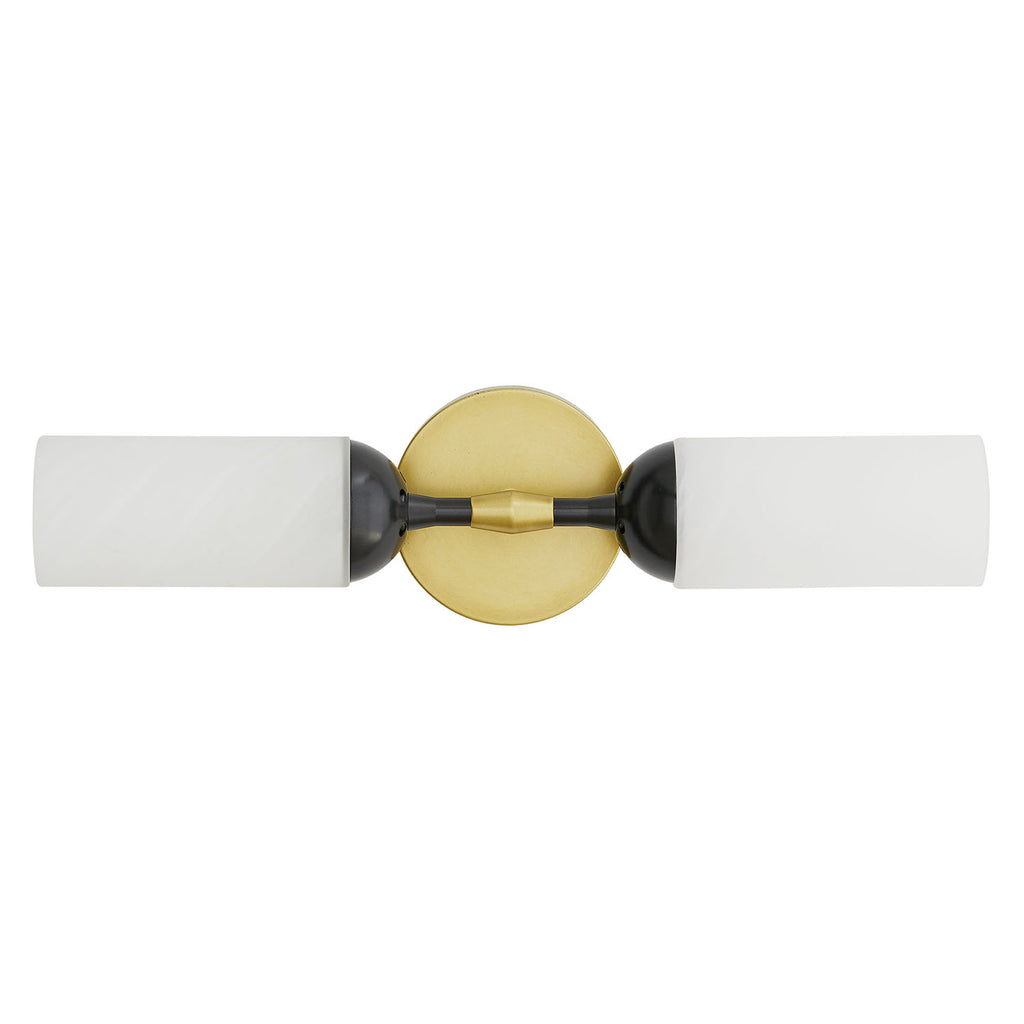 Showcasing swirl glass shades in a matte, snow-marble finish paired with bronze steel cups and an antique brass backplate—Emmett marries contemporary and classic influences. It installs vertically or horizontally and is damp-rated (finish may vary).