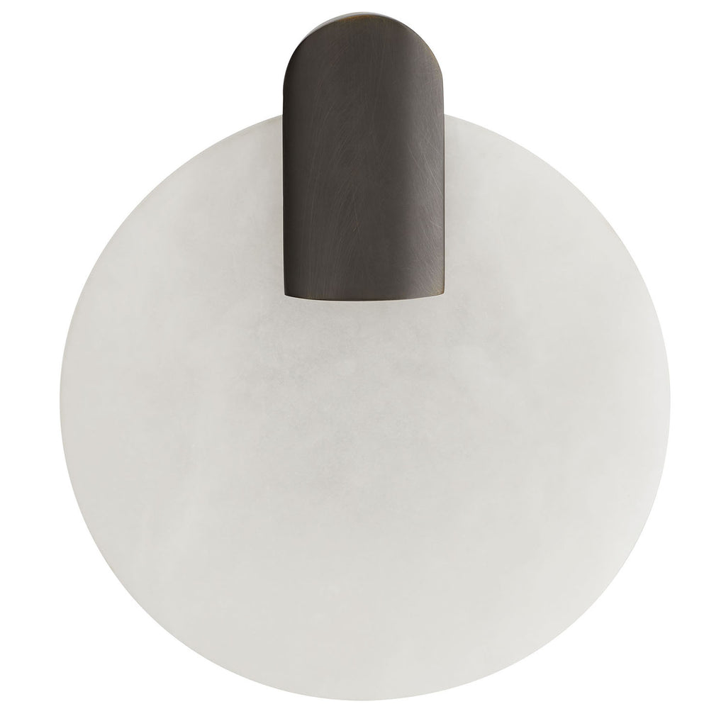 The minimalistic aesthetic of this sconce is a design force to be reckoned with. Setting the foundational stage is a gorgeous circular slab of natural alabaster, elevated by a bronze steel accent that adds dimension. The alabaster filters light to create a soft, natural glow. Jewelry-inspired and ideal in multiples. Certified for damp locations and intended for interior use; finish will vary.