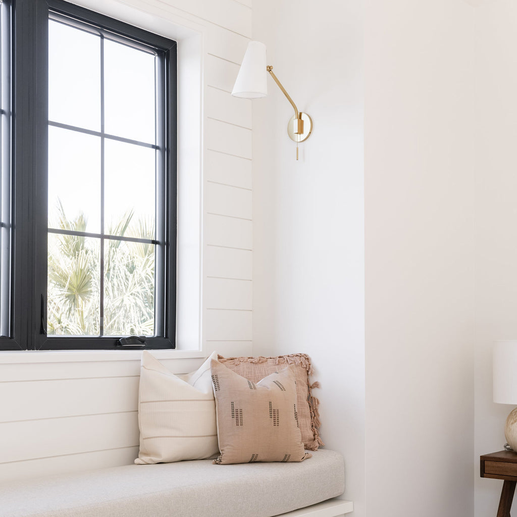 Our Hudson Valley Lighting Patten family brings together a visually appealing conical shade, square brass arms, and customizable versatility by way of swivels. The swivel just behind each shade allows you to move them right or left, as well as either tighten the focus of the light or beam it farther out. Clean lines and mid-century appeal combine with versatility to make Patten a useful delight.Fixture may only be installed as shown in picture