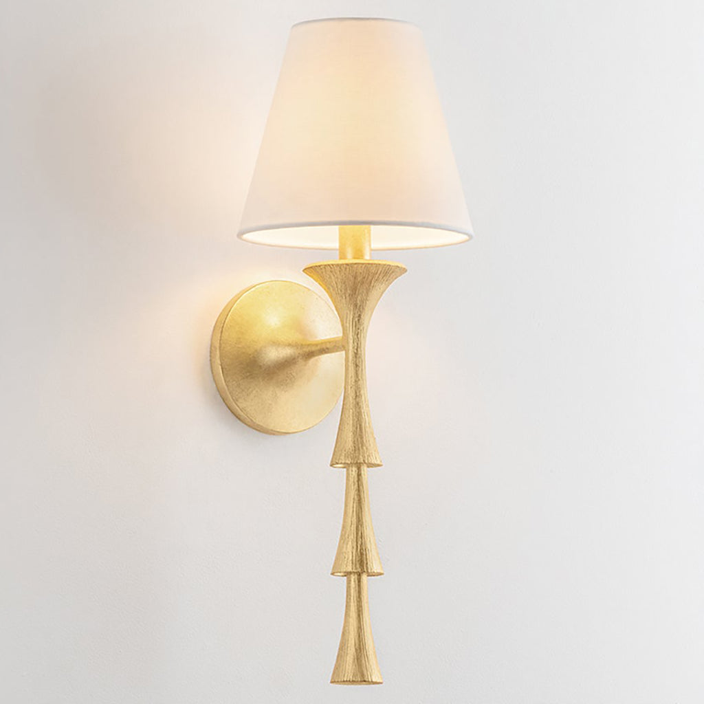 Nature meets geometry in the elevated Hudson Valley Lighting Vails Gate. This pendant features a repetitious stack of flared trumpet forms, reminiscent of the nodes on a flower stem. Fluting details add depth to the symmetrical design, nodding to its organic origins. Finished in Vintage Gold Leaf, Vails Gate is available as a pendant light in two sizes and a 1-light sconce.