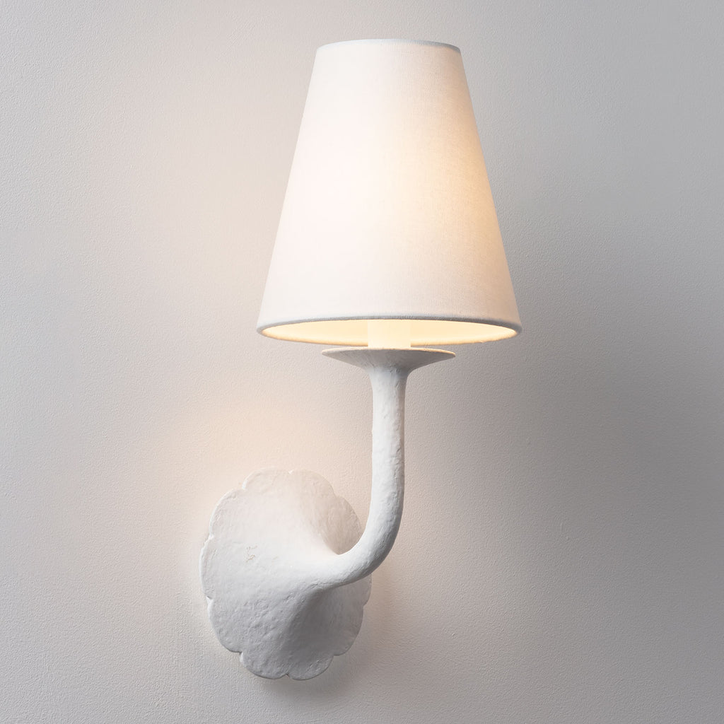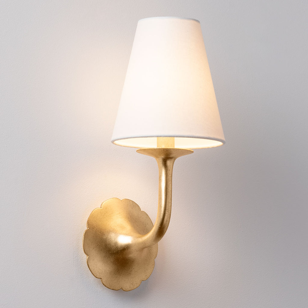Renowned for built-to-last quality with a timeless feel, Hudson Valley offers a modern lighting collection with elegant touches, recalling vintage inspiration. Modern meets rustic in this nautical-inspired flush mount. Inspired by a flower in bloom, the charming Winnipeg sconce features delicate scalloped edges and a tailored silhouette. The botanical backplate swoops elegantly upwards to cradle the light source, which glows through a tapered white linen shade. A White Plaster finish imparts a chic, contemporary feel, while the Vintage Gold Leaf is refined and classic.