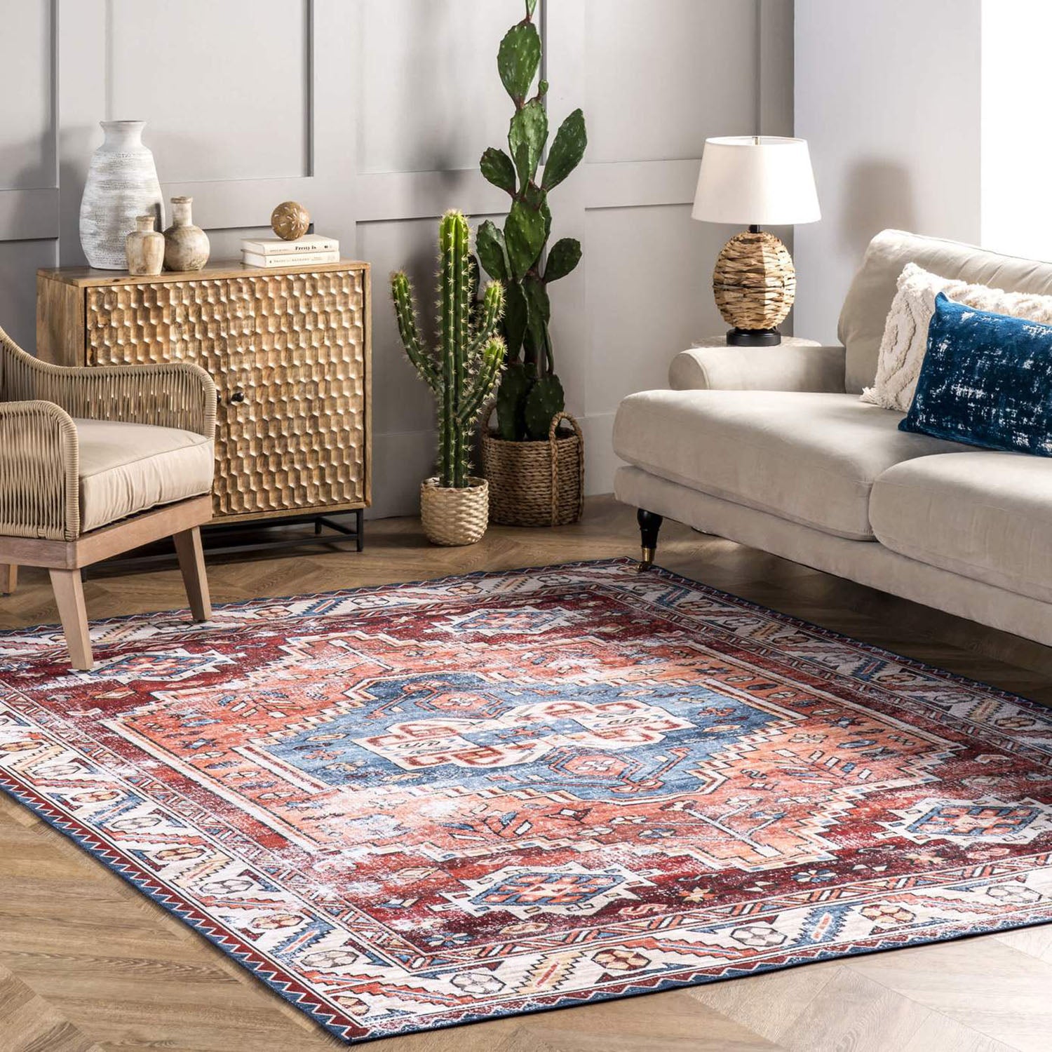 This beautiful machine-washable printed rug makes the perfect low-maintenance, eco-friendly addition to your home. Made from sustainably sourced premium recycled synthetic fibers, this high-quality washable area rug features incredibly soft and sleek pile.