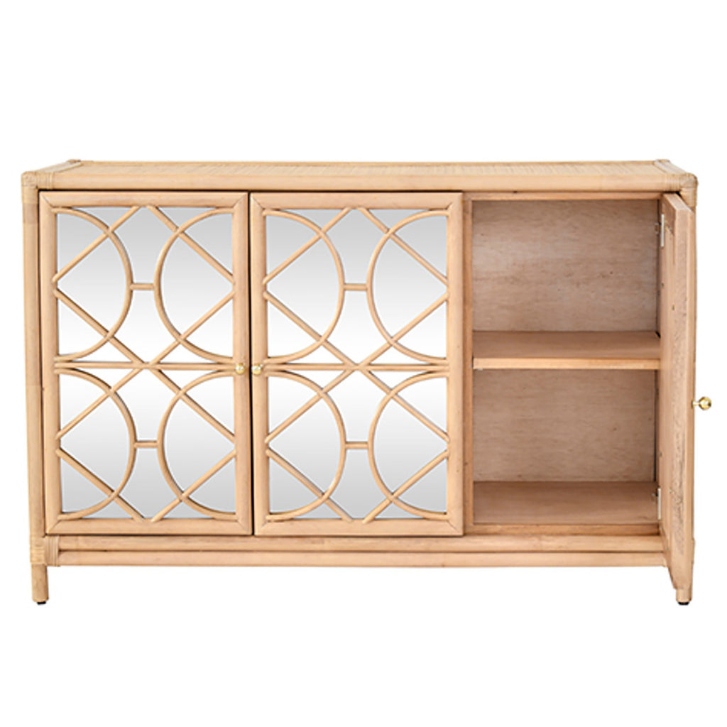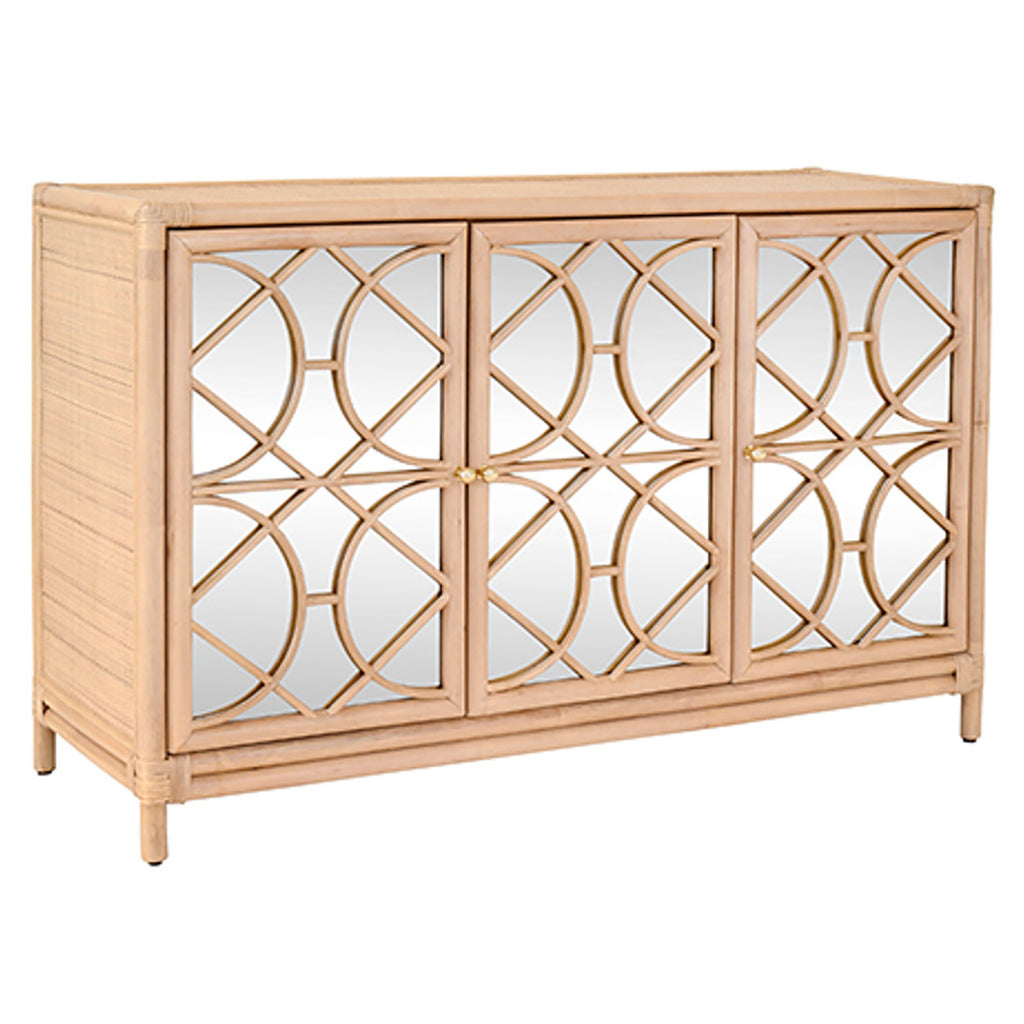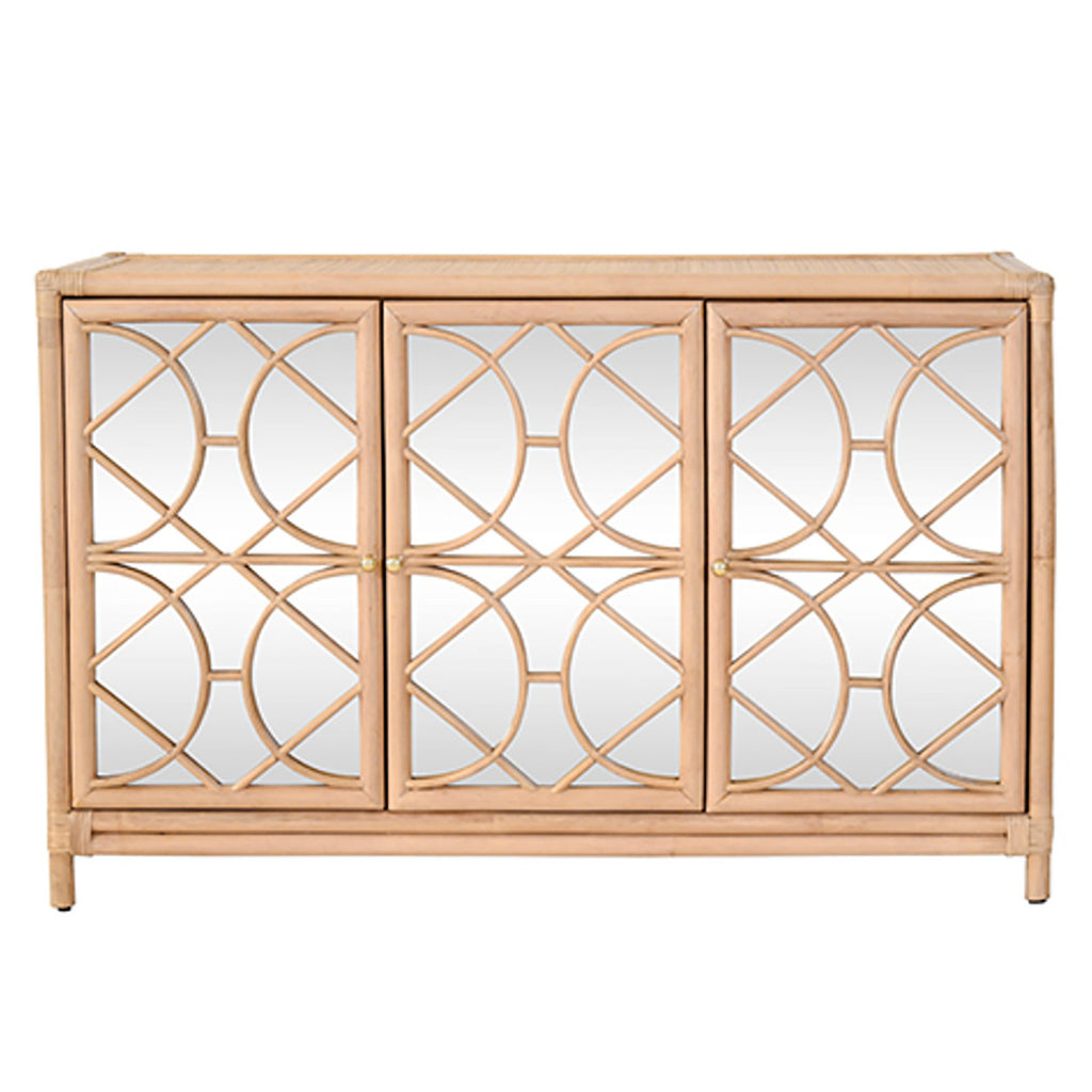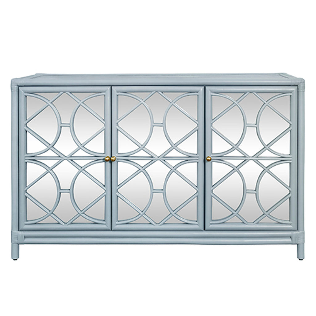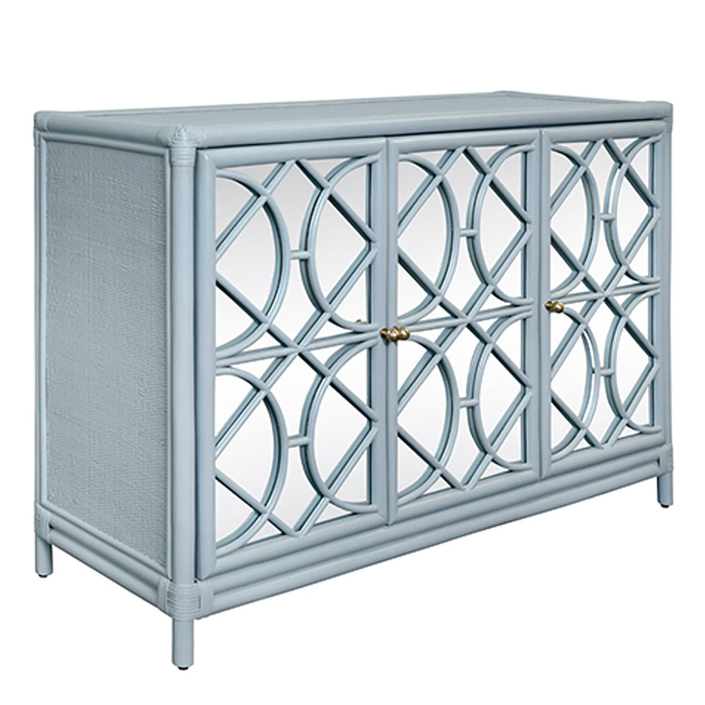 • Three Door decorative mirror front buffet in rattan painted light blue or natural rattan