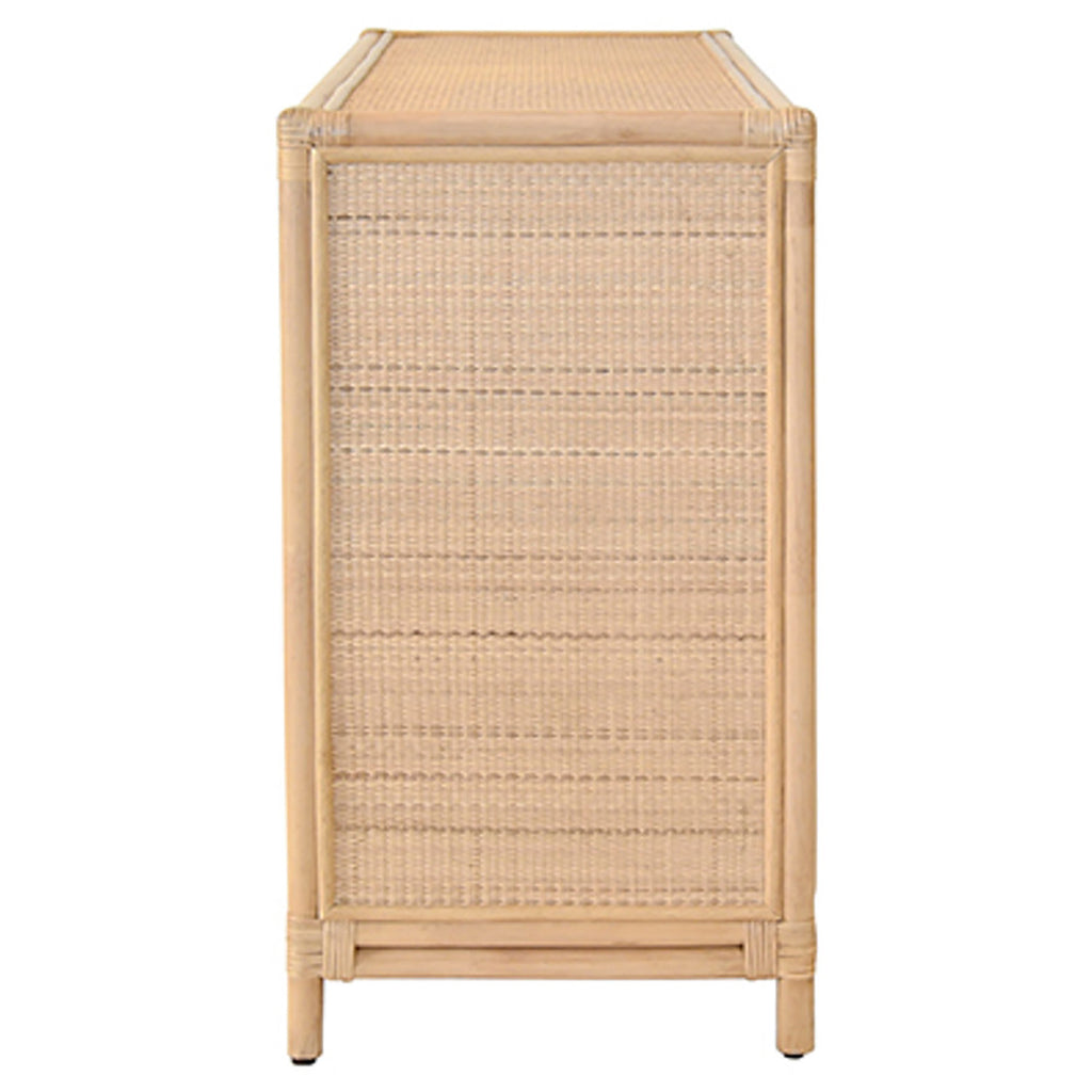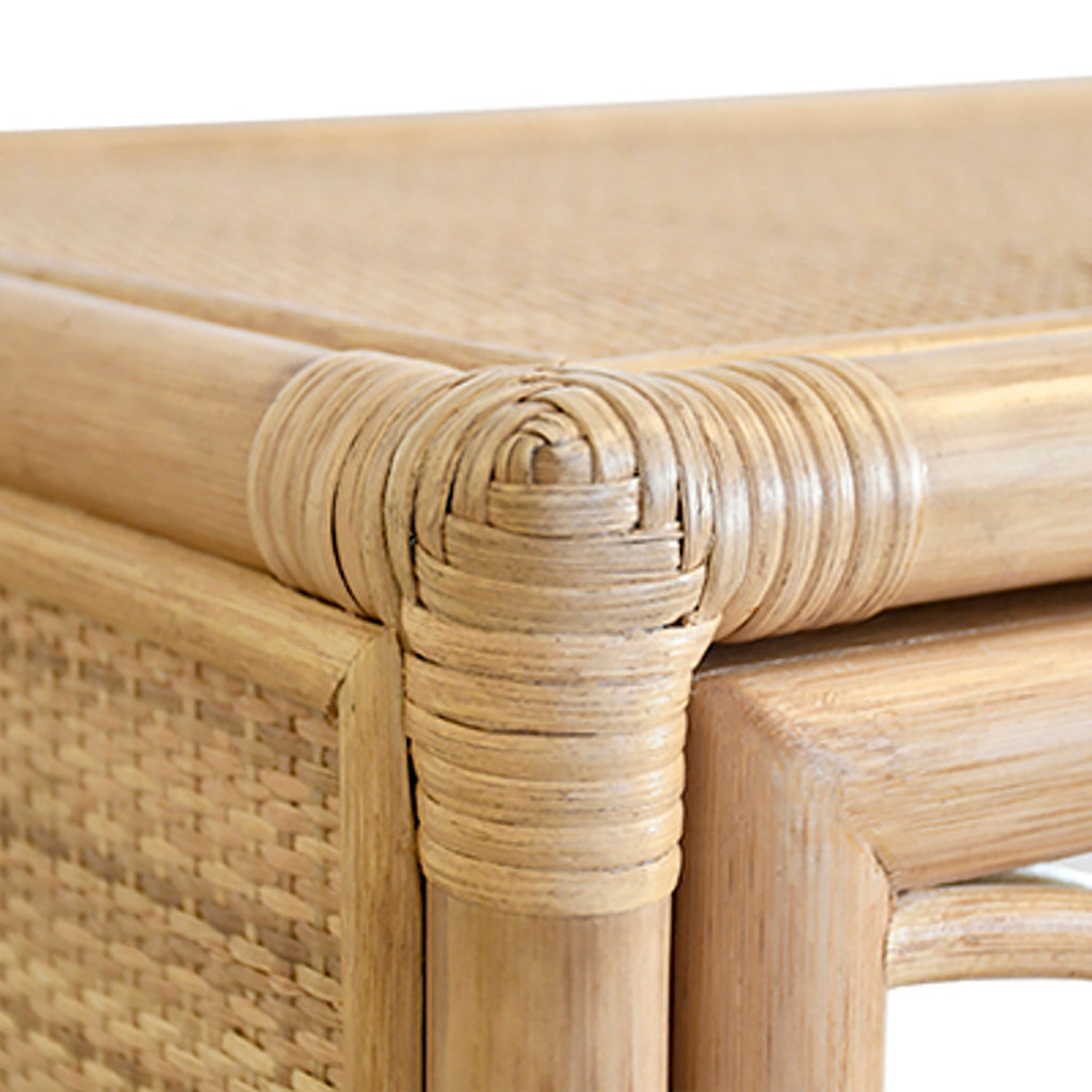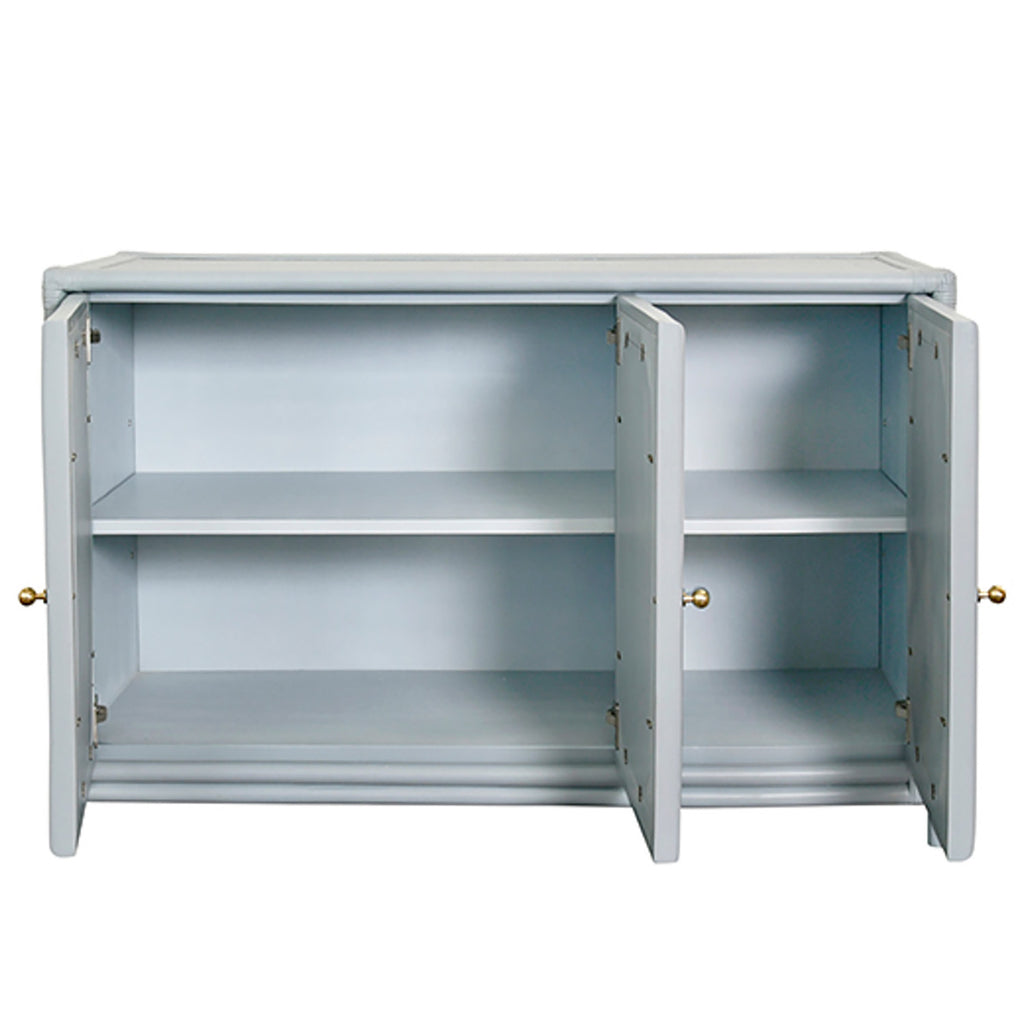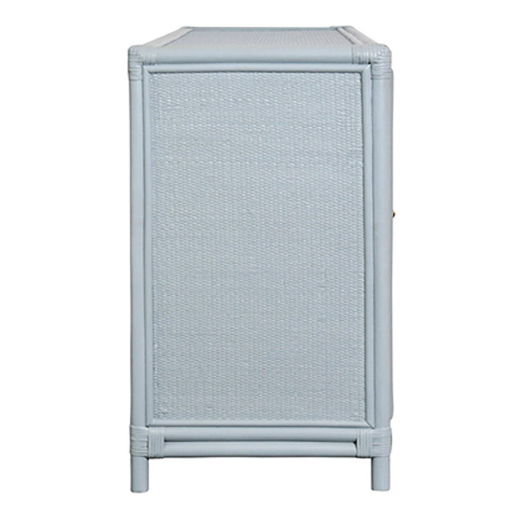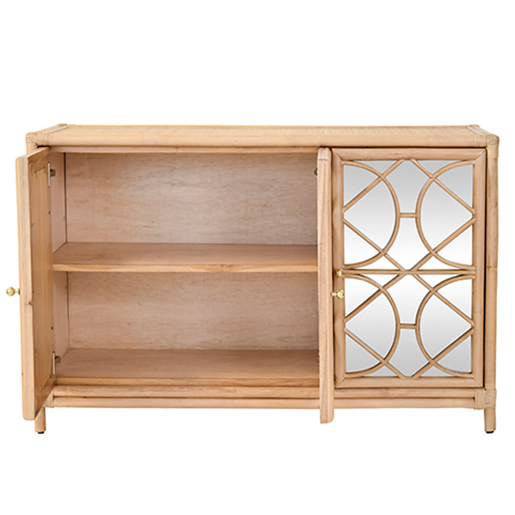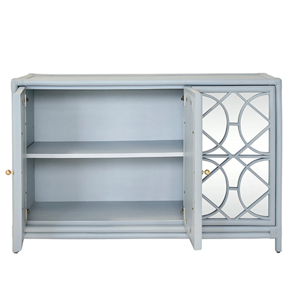 • Three Door decorative mirror front buffet in rattan painted light blue or natural rattan