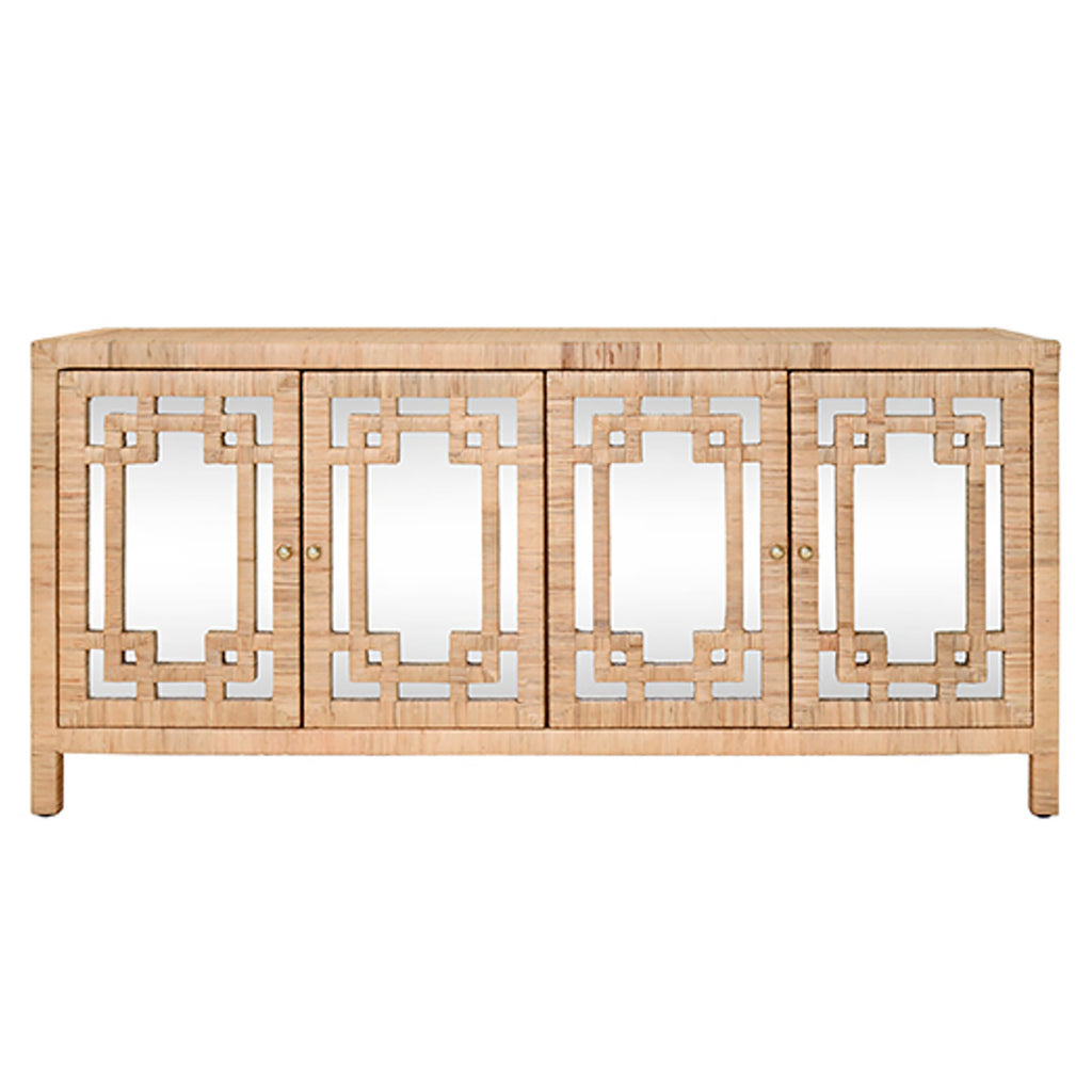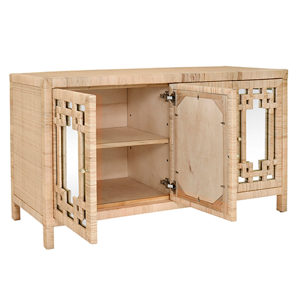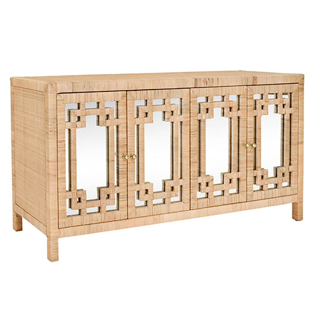 • 4 Door Buffet with mirror front doors and wrapped rattan