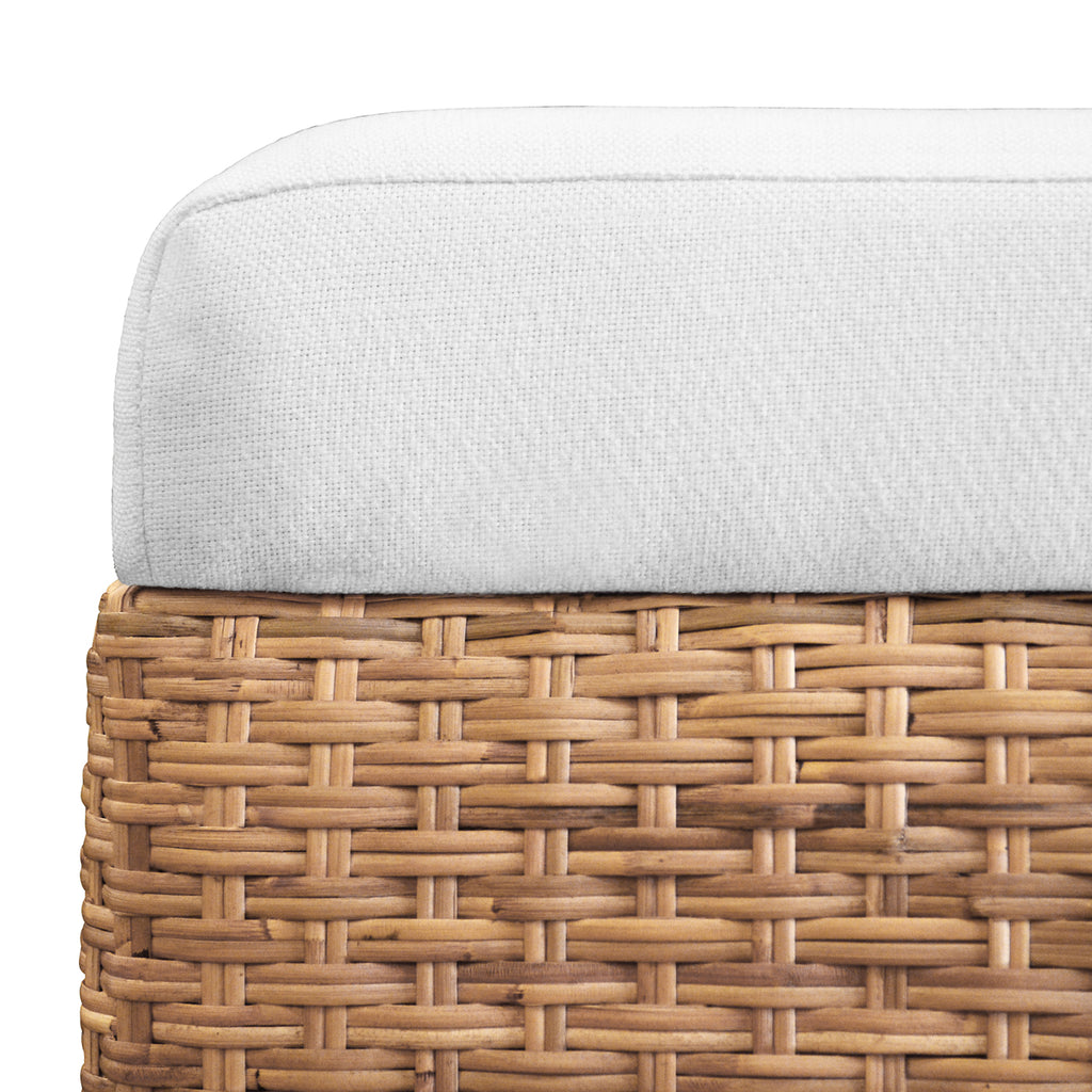 • Bench in woven water hyacinth with performance ivory linen fabric