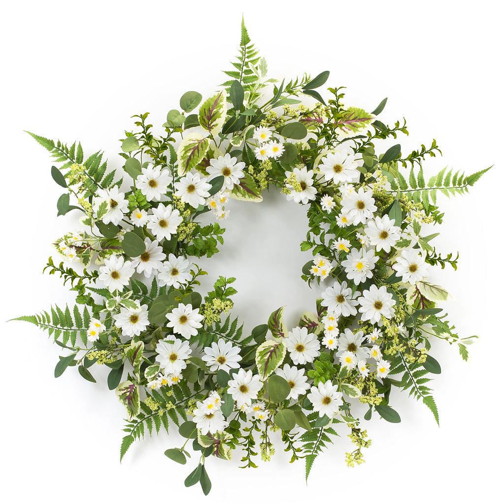 Send a warm welcome with this beautiful Mixed Floral Wreath. The varigated foliage with assorted daisy flowers is a great addition to your everyday home decor. The quality polyethylene flowers are sure to last for seasons to come. The high-grade twig base gives the peice additional color and depth. Display the wreath on your front door or entryway to welcome your guests in style.