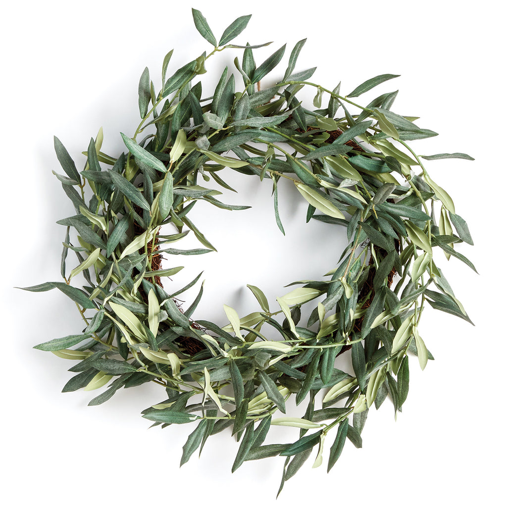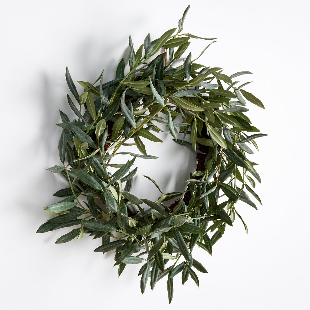 This olive wreath is a charming addition to any space needing a touch of warmth. Distinctive and refined, it's no wonder this Mediterranean beauty has stood the test of time. Comes complete with a twine loop for easy hanging. Use as a candle centerpiece on a table or hang on an interior door.