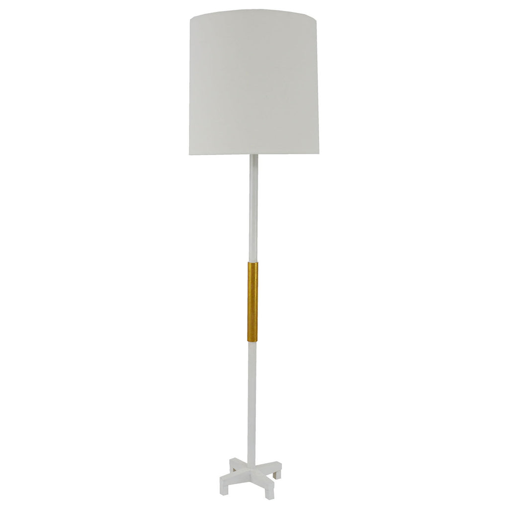 • Finish: White and Gold with White Shade or Antiqued Brown with Gold Leaf with Grey Shade