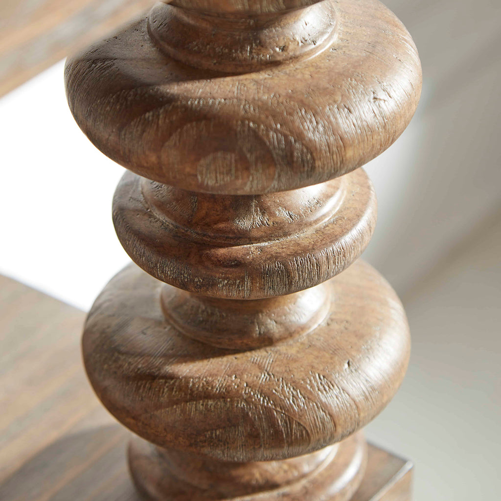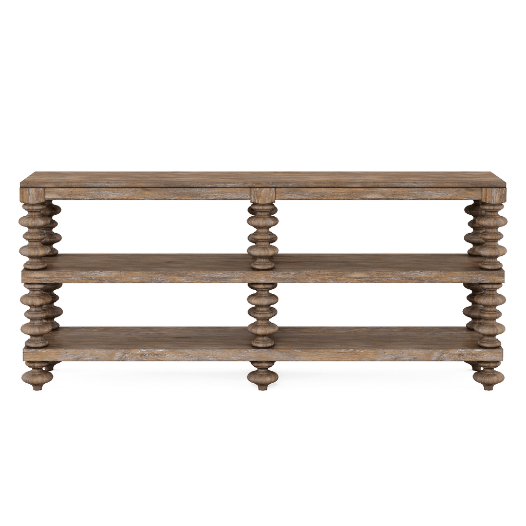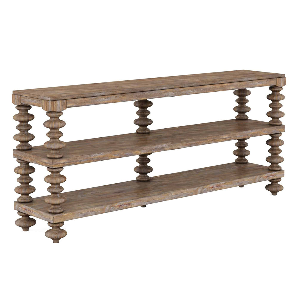 Step across the threshold of a new design frontier with the Architrave collection. Based on an architectural term that refers to a frame surrounding a doorway, this collection symbolizes a transition from history to the future. Architrave is historically inspired, reinventing the strong lines and classic symmetry of Neoclassical style from the Louis XVI period in France. The elegant turned legs of the Architrave Console Table, a hallmark of the neoclassically-inspired Architrave collection, support a 72-inch top and two open shelves that can be used for storage or display. This handsome piece combines historical form and rustic charm in a casual classic style, and can be used as a narrow table behind a sofa or in a hallway.