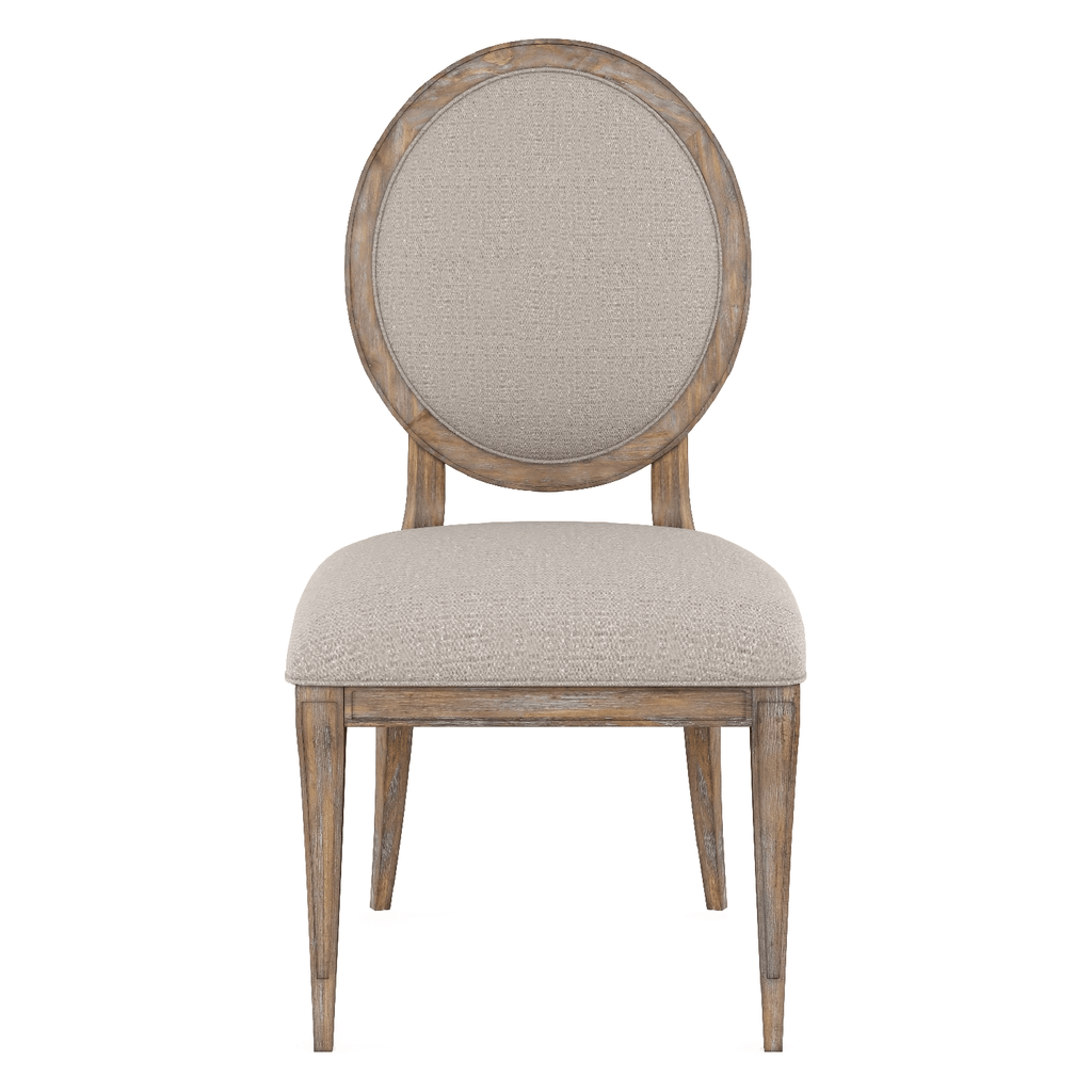 Step across the threshold of a new design frontier with the Architrave collection. Based on an architectural term that refers to a frame surrounding a doorway, this collection symbolizes a transition from history to the future. Architrave is historically inspired, reinventing the strong lines and classic symmetry of Neoclassical style from the Louis XVI period in France. Pull up a chair and dine in elegant style, the Architrave Oval Side Chair is here to deliver traditional beauty that's sure to be the talk of the table. Rooted in historical style, this dining chair is based on 18th-century French chairs in the iconic medallion style, updated for the modern era with rustic pine and casually chic neutral woven upholstery.