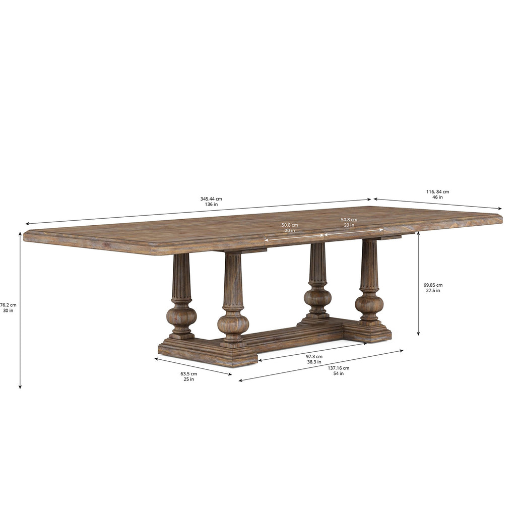 • Includes two (2) 20-in leaves that extend the table top from 96-in to 136-in.