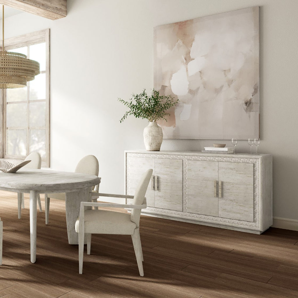 Evoking an open air and near the sea allure, Ashlar blends Coquina textures and silky-smooth painted surfaces into organic silhouettes. Its neutral color palette and sanded metal accents are reminiscent of a stroll on the sparkling sands of the Keys. Amorphic shapes mix with rich textures to stir a sensory experience that satisfies any space with a relaxing and calming ambiance.