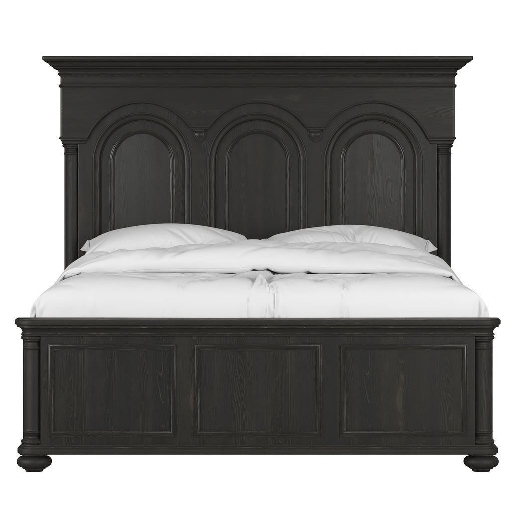 Combining an architecturally inspired trio of classical arches with a cornice-topped headboard and fluted Roman column details, the Atrium Panel Bed is truly a monument to elegant sleep. A hand-rubbed blackened finish gives this bed contemporary appeal, striking a perfect balance between the Old World and the new.