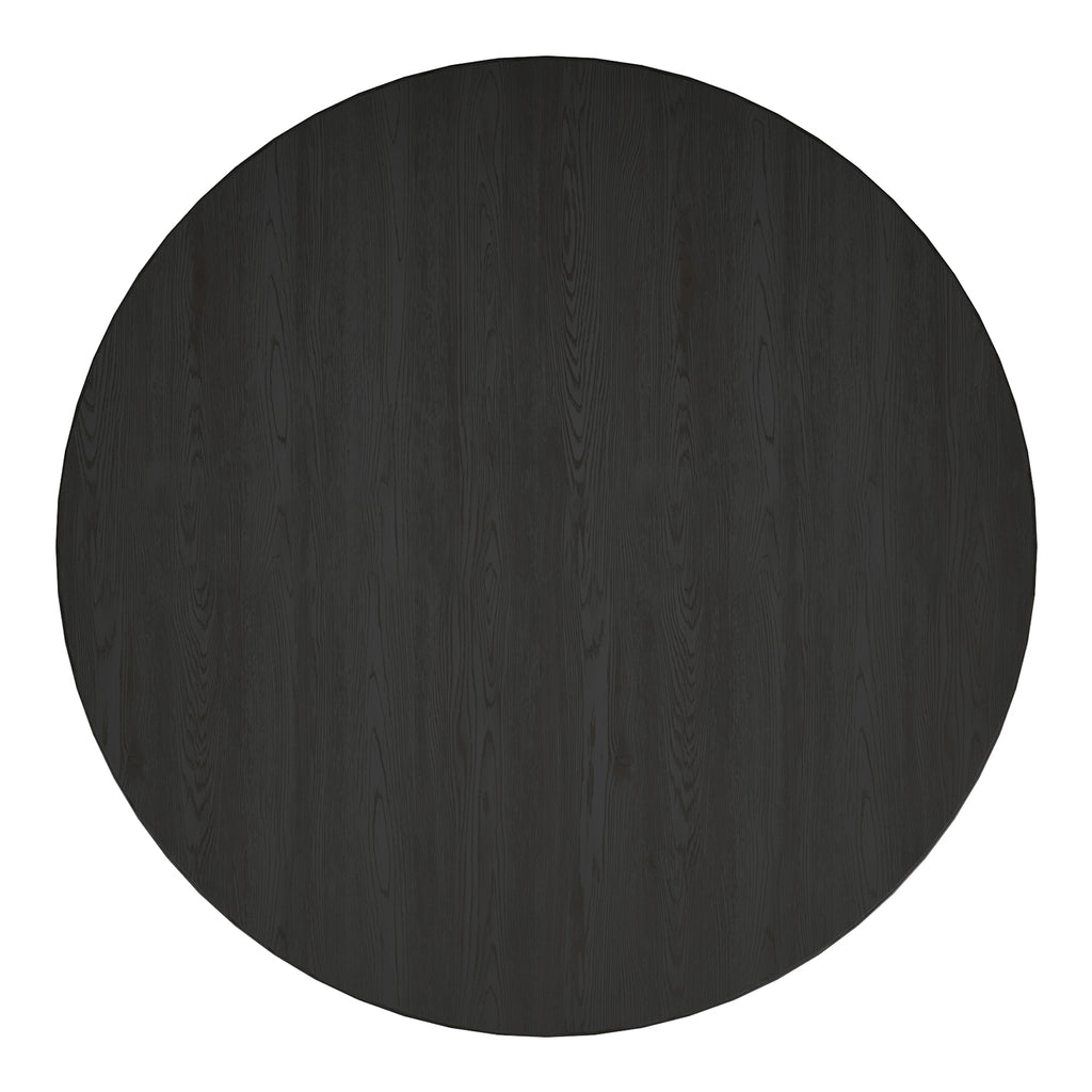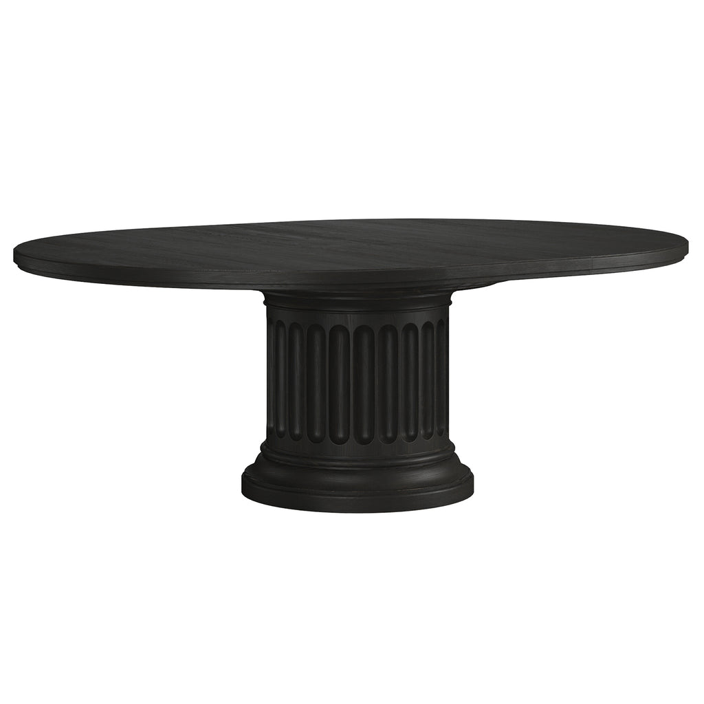 Fashioned with a massive fluted column base, this classically-inspired dining table has earned its place in the temple of style. This bold design highlights the architectural beauty of Roman-style columns, as well as the richness of heavily grained wood's reflection of nature. The table is topped by a impressive 64in round of hand rubbed blackened sable finish, balancing Old World familiarity with a modern youthful charm.