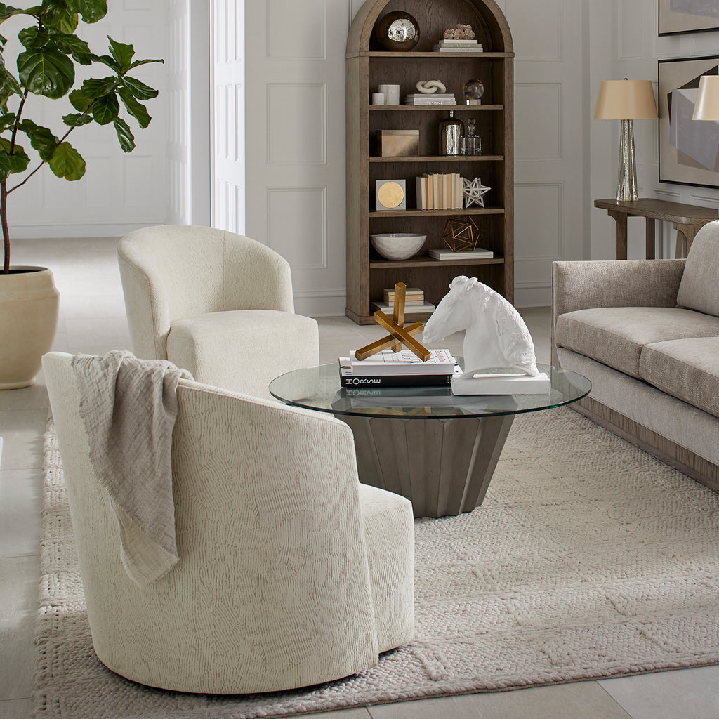 Modern art enters the living room with the Bastion collection, delivering effortless comfort with a sculptural aesthetic. Angular lines and soft curves combine with beautifully grained wood and chic neutral upholstery, for a look that suits a range of contemporary styles.