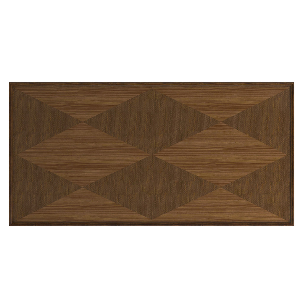 New Traditional Cocktail Table with both clean lines and a dramatic Quartered Walnut top with Diamond Pattern with tapered legs and Burnished Gold finished tapered legs