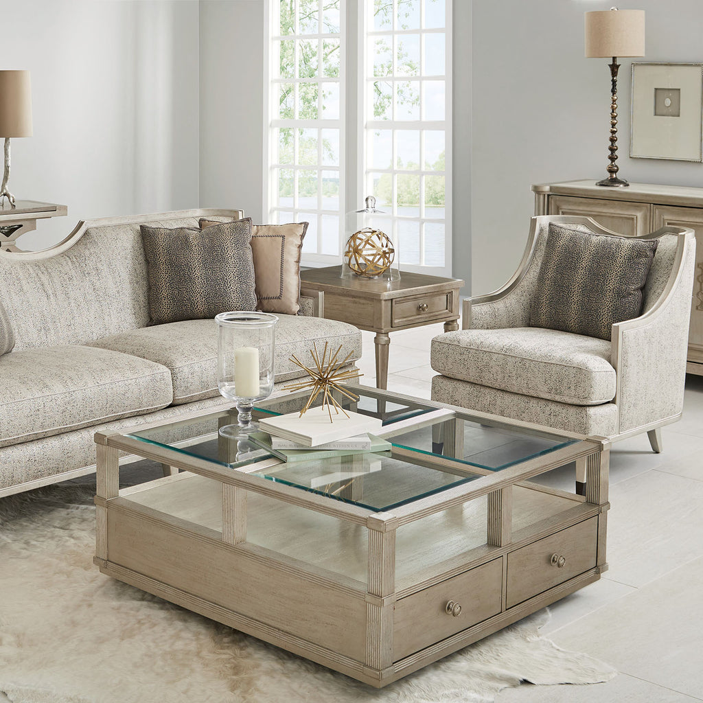 The Harper Bezel Matching Chair echoes the lines of the Harper Bezel Sofa and brings together elements of both contemporary and traditional design: square tapered wood legs and exposed wood frame finished in silvery metallic paint, curved arms, and a reverse half moon cut-out on the back. ?The tonal upholstery fabric is complemented with a generous throw pillow accented with ring fringe.