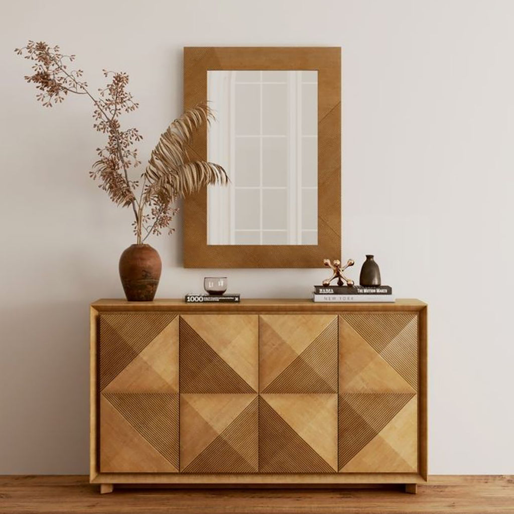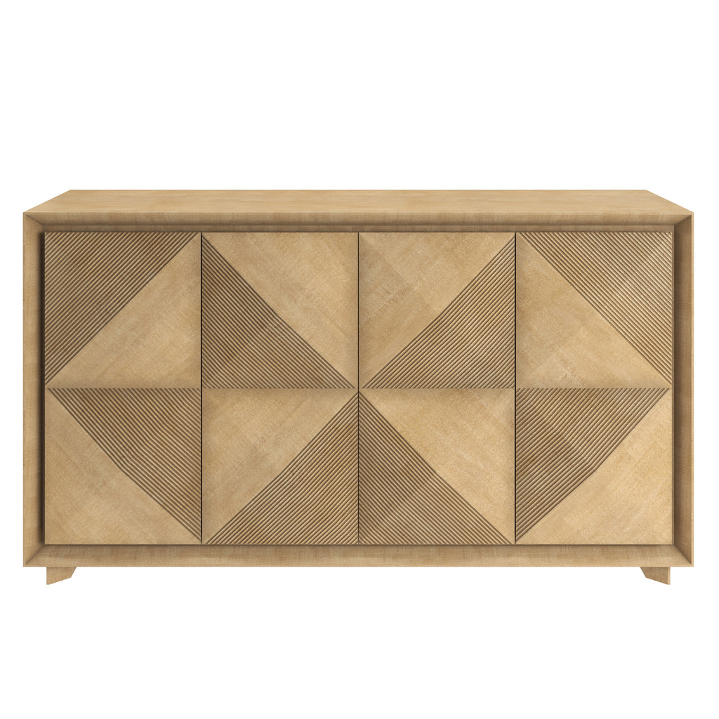 Classic Contemporary Buffet in Figured Maple with Deeply Patterned Faade Doors