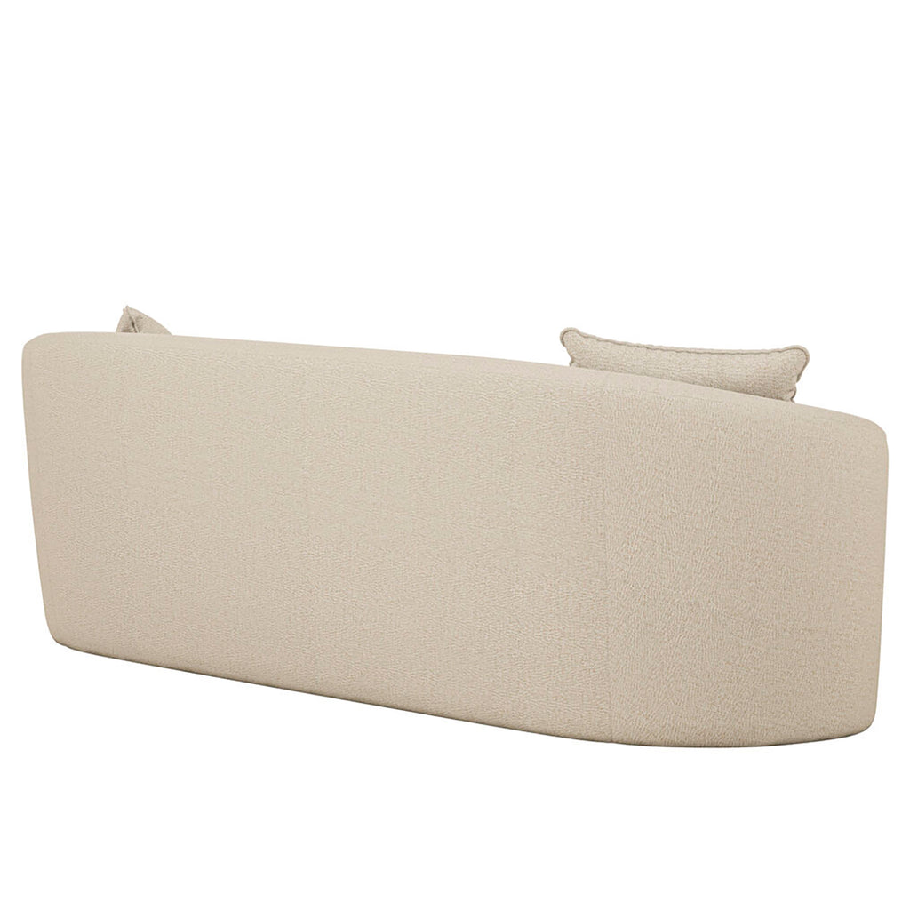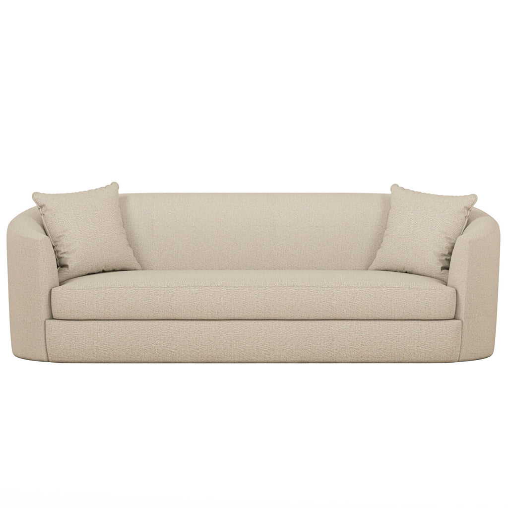 With its distinctive curved pill shape silhouette and a sleek bench seat cushion, this sofa effortlessly blends modern design elements with classic charm, making it the centerpiece of any room. To further enhance your lounging experience, the Moreau Sofa comes with two complementary accent pillows that not only provide extra support, but also add a layer of opulence and refinement to the overall design.