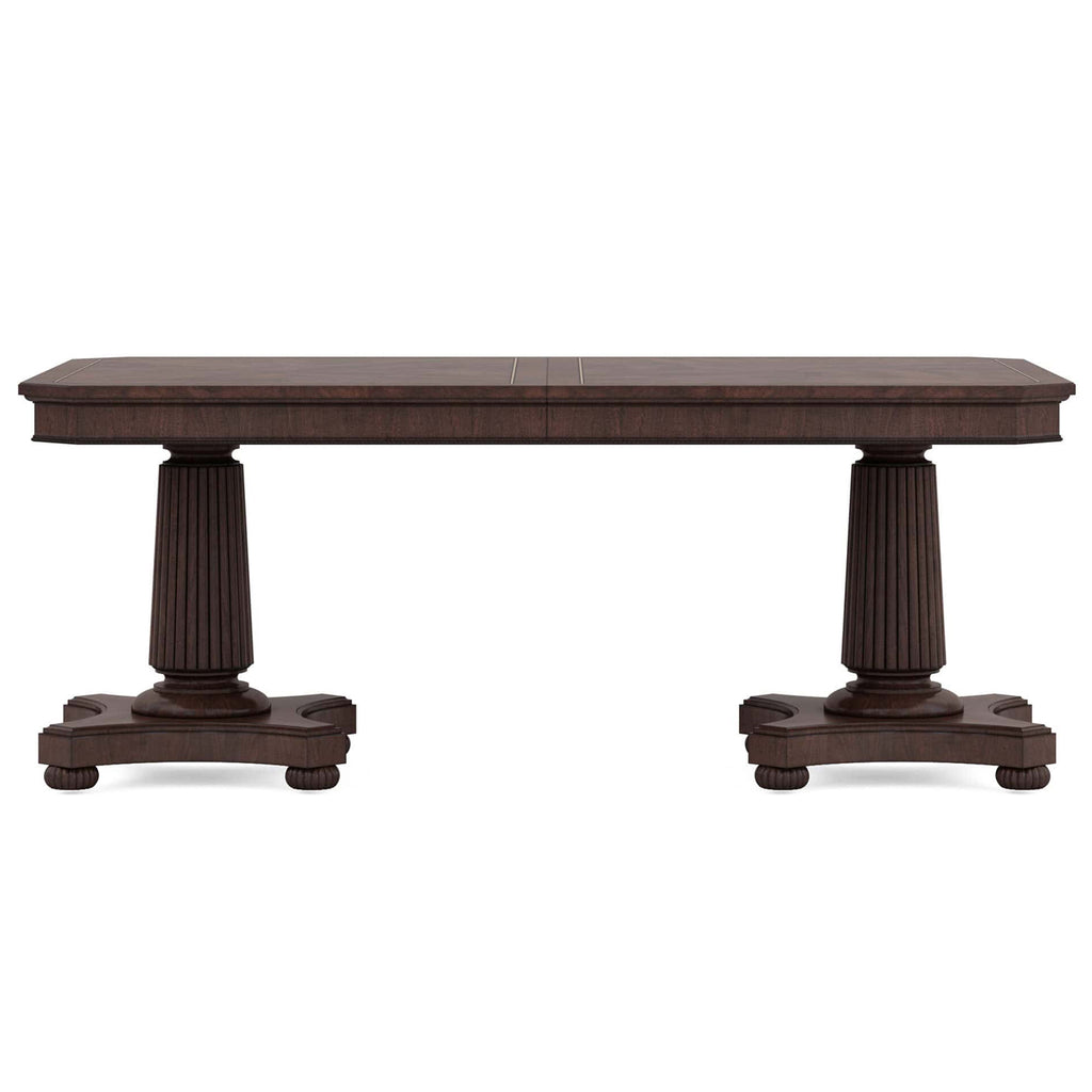 • Dual pedestal base features two fluted columns on bun feet