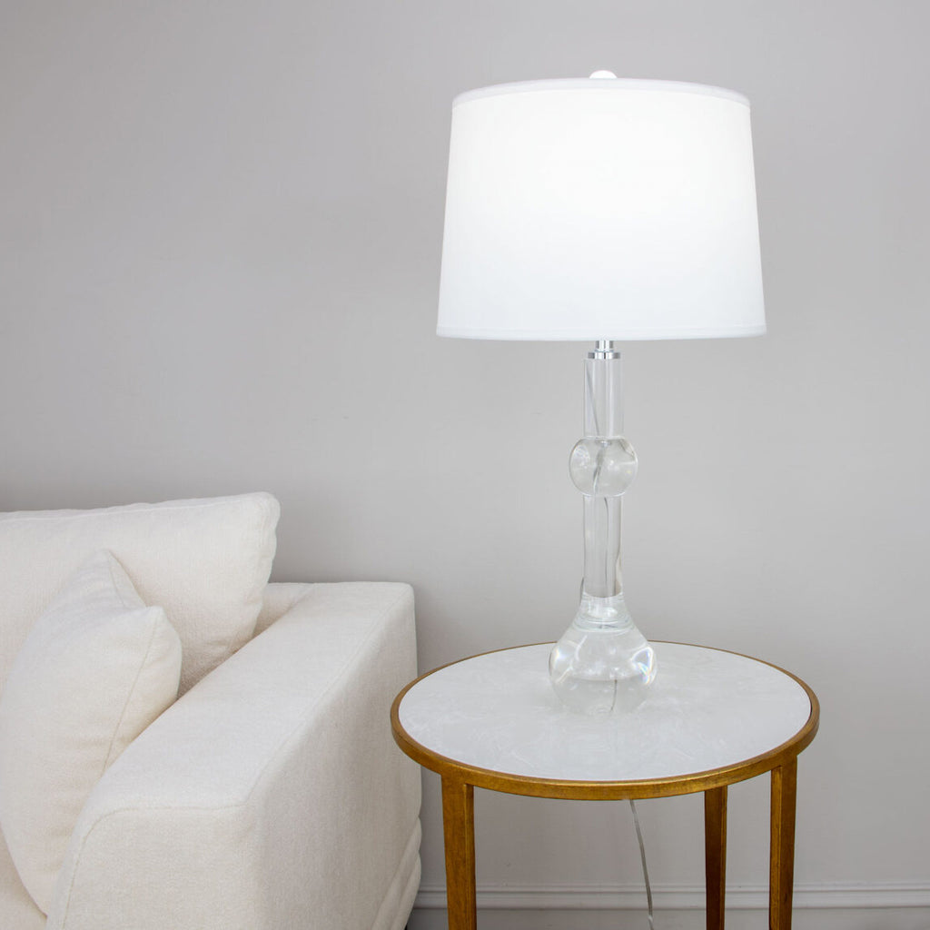 The cleanness of the French Wired design (electrical cord exit near the bulb socket, as opposed to running down the lamp internally and exiting at the base.) lets the beauty of the crystal shine through, unobtrusively. Solid crystal lamp.