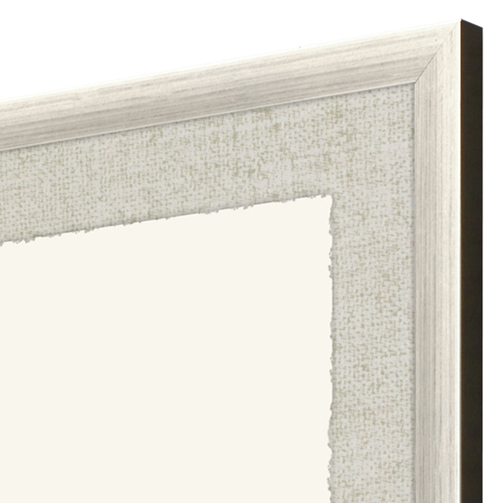 Giclee is printed on a handmade paper with a natural edge and float mounted on a premium mat. Framed in a silver leaf block profile wood.