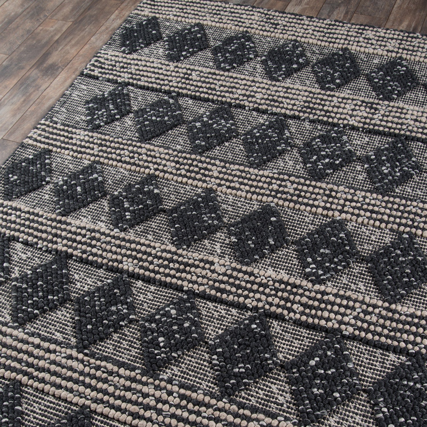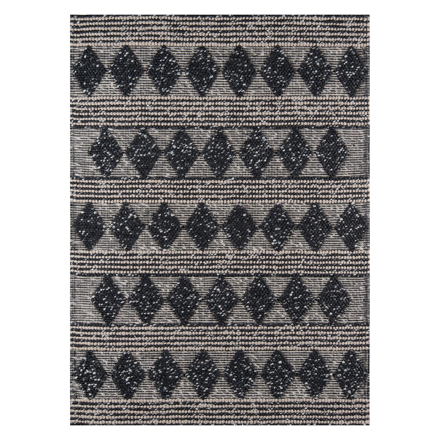 Add a touch of the American Southwest with the earthy styling of this modern area rug collection. This assortment of decorative floor coverings features a softly toned grey, beige and blue color palette and high-low pile that accentuates graphic geometric patterns like diamonds and stripes. With balanced, rustic designs, this elegant series of hand-tufted wool rugs brings long-lasting elegance to high-traffic areas and restful spaces alike.