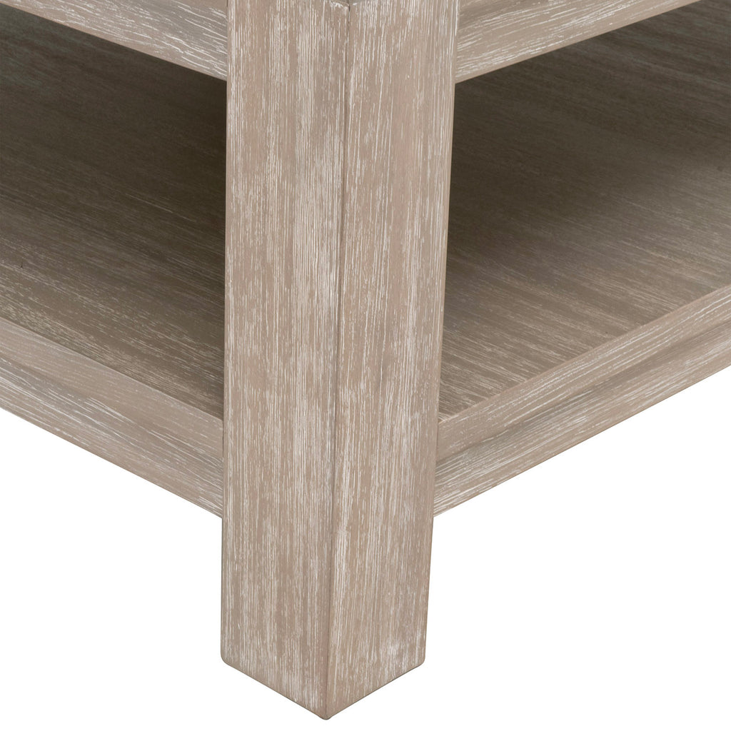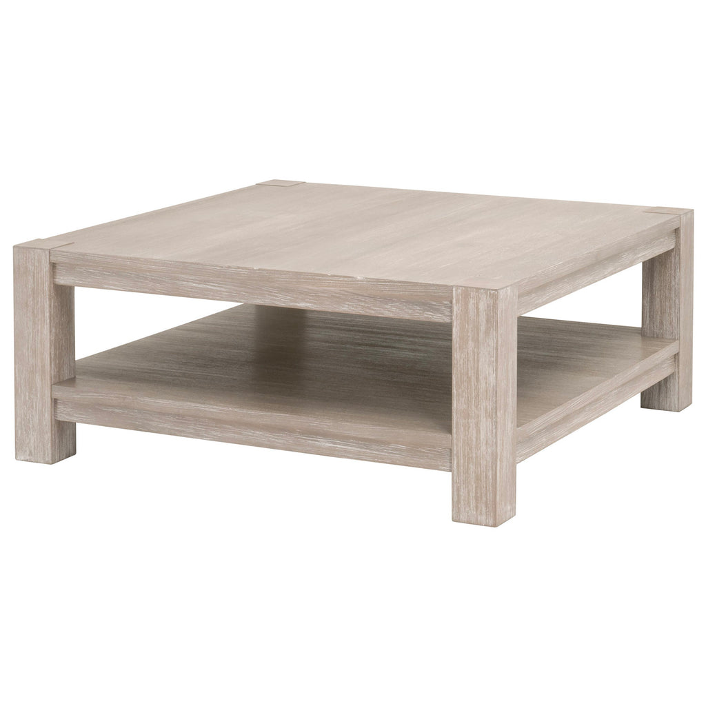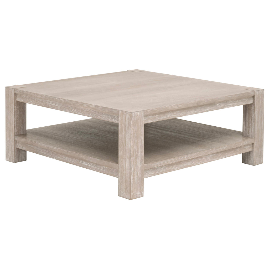 Enhance your living area with the transitional charm of this Adler Square Coffee Table by Essentials For Living. With a frame constructed from solid beech wood and adorned with acacia veneer, its natural gray finish radiates warmth and elegance. Crafted with a solid wood apron and veneer top and legs, this table is built to last. The finish features a slightly distressed texture, adding natural-looking elements and a modern look.It offers ample space for decor and essentials. Additionally, the lower storage shelf provides convenient organization without compromising on style. This stunning coffee table will supply plenty of space for your needs, as well as update your living space with its timeless look.