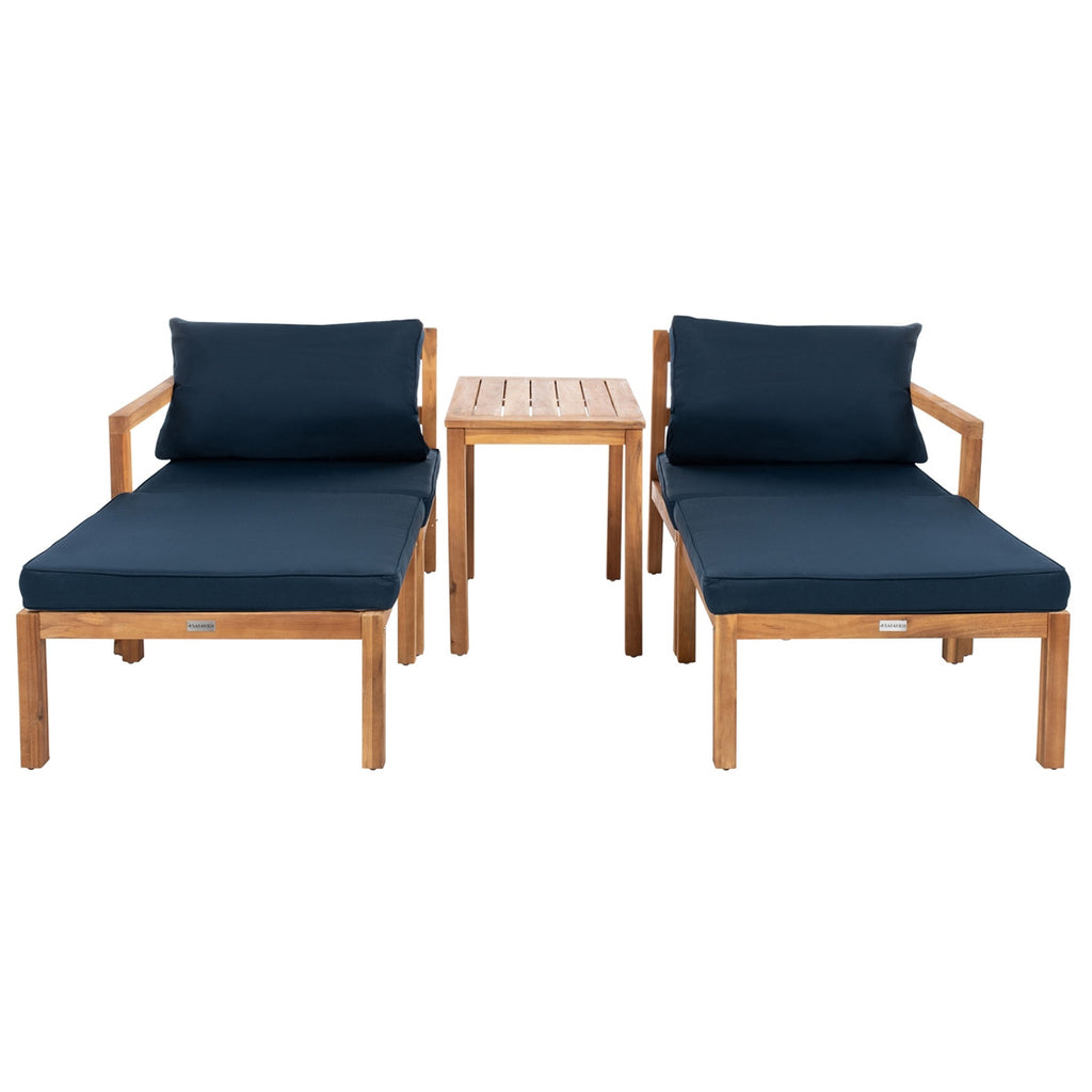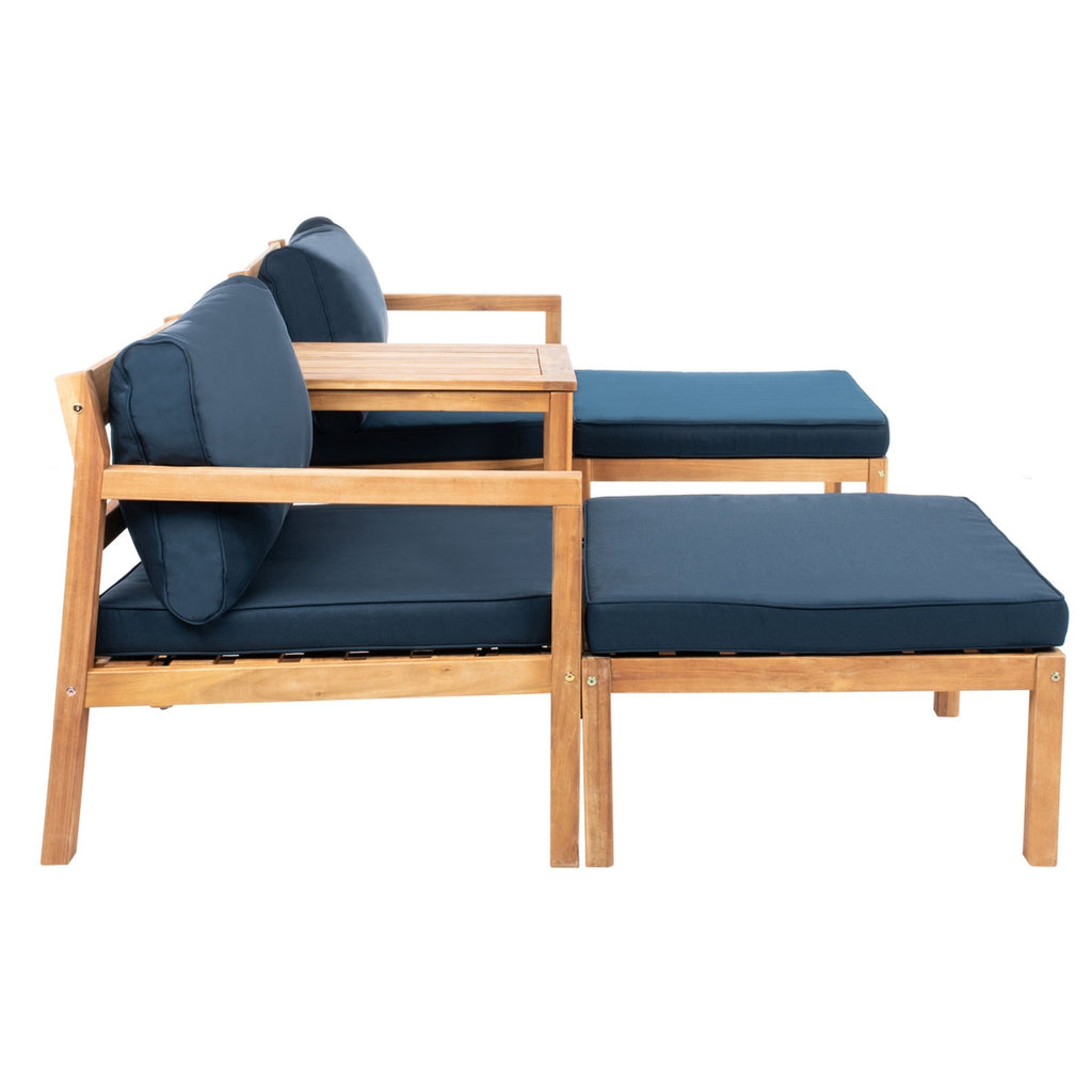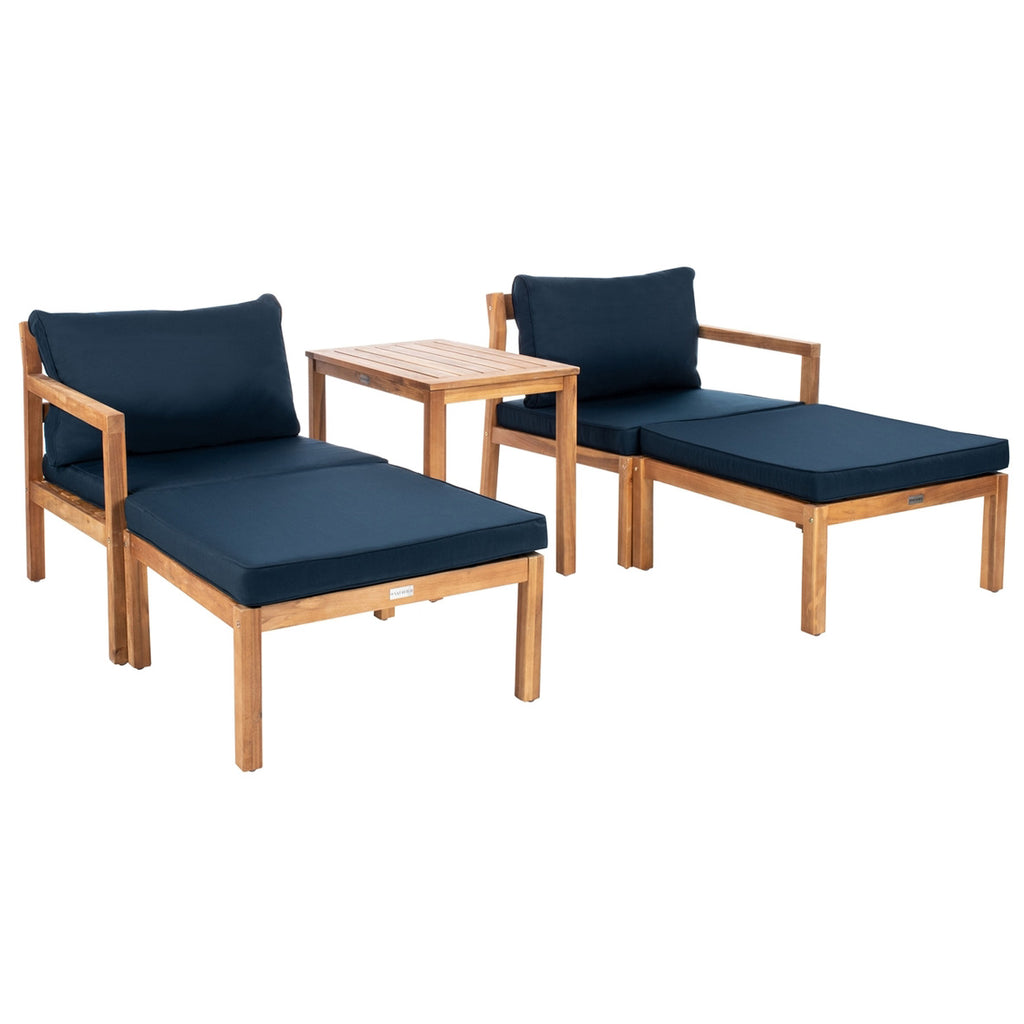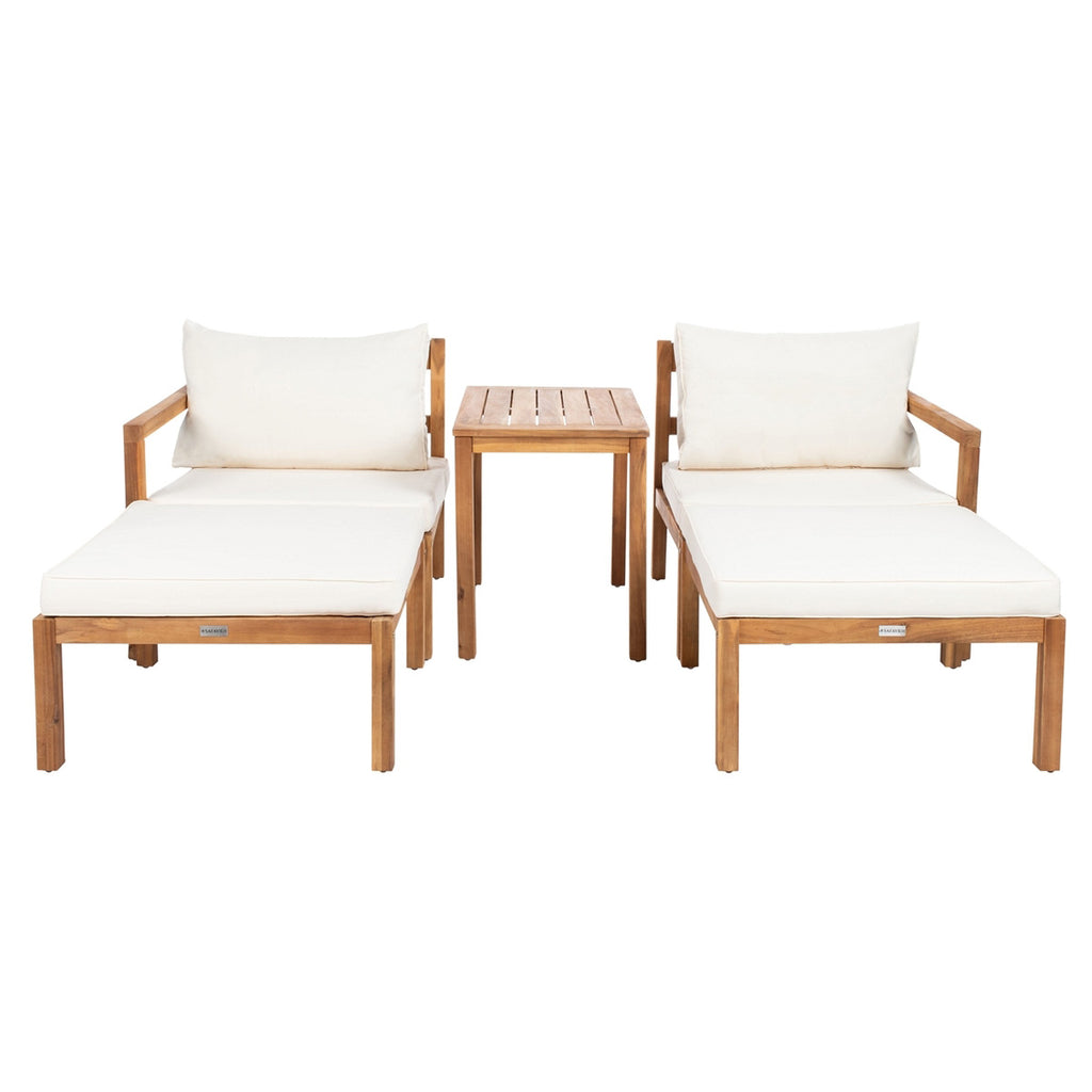 Setting the scene for your exclusive staycation paradise, this 5 piece outdoor lounge set lets you lounge in luxury. Complete with versatile ottomans that double as extra seats and a versatile Acacia wood table, the cushioned feel and rich look of brings the cabana to you.