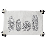 A variety of winter pinecones are embroidered on the Ainsley Pillow Case, a lumbar decorative pillow cover in black and white. Cheerful black and white pompoms are bundled at each corner and add a fun festive layer to the holiday home.