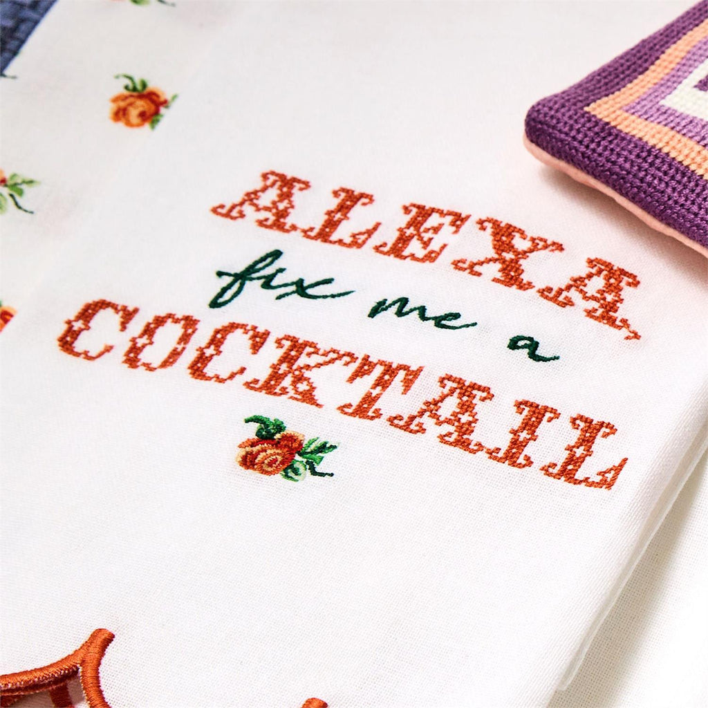 Alexa, are you listening? Alexa Kitchen Dish Towel designed by Boyar Gifts NYC saying: "Fix Me a Cocktail," Perfect for adding a touch of whimsy to your culinary space, this towel are both functional and stylish. Ideal for drying dishes, hands, or simply hanging on display, this versatile accessorie is a must-have for any home chef.