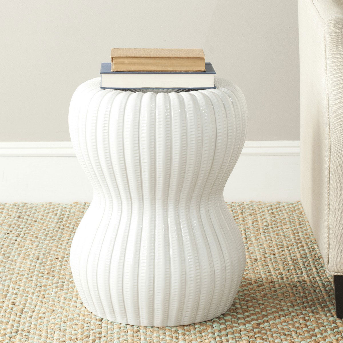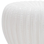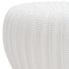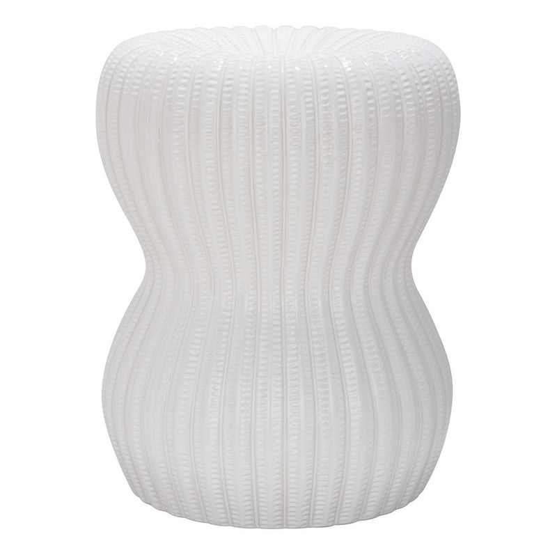 Sculptural beauty for the patio, garden, or living room, this hourglass garden stool is a study in serenity with its clean white glaze on textured ceramic. Use this charming piece by itself as an artistic accent or place several in a cluster for decorative drama indoors or out.