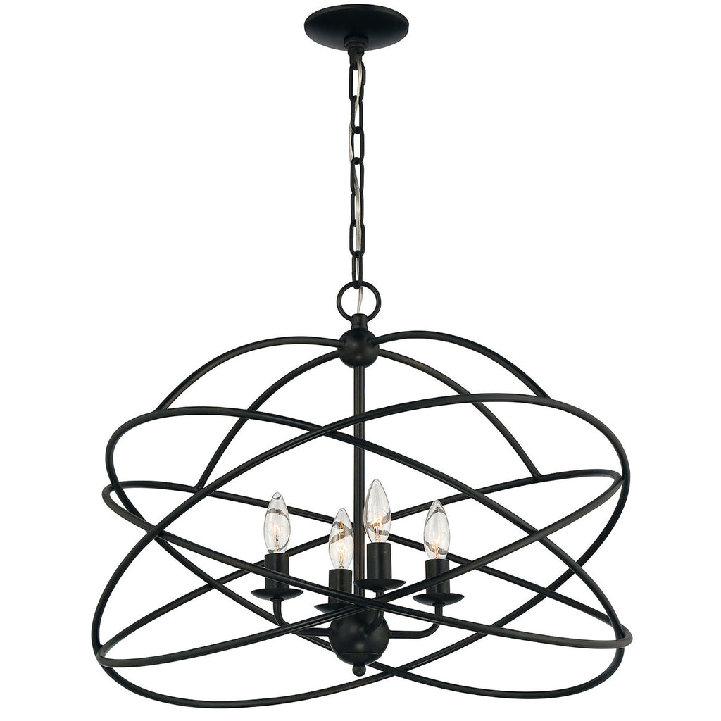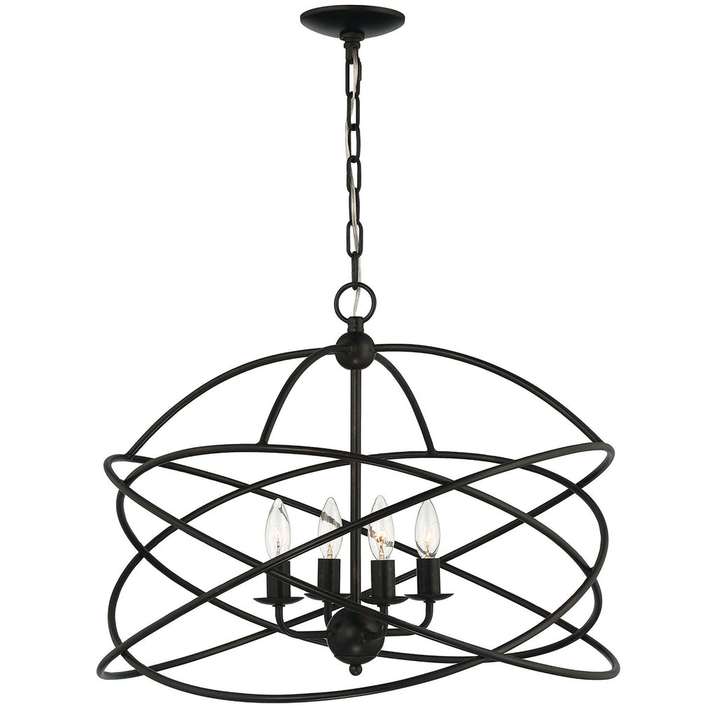 Swirling bands of iron in an oil-rubbed bronze finish surround the center of this four-light ceiling fixture. The Anson Chandelier slender bands convey an airy, geometric vibe. Use this dimmable chandelier to make a style statement in a modern farmhouse or industrial-style home, or in a dramatic contemporary space.