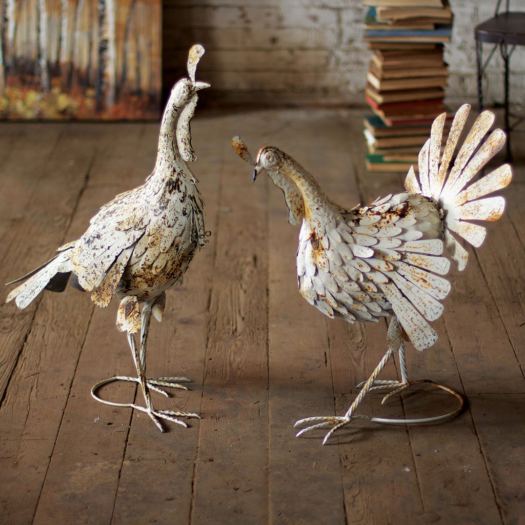 With their distressed metal finish, this Set of 2 antiqued metal turkeys will make a classic addition to any decor this holiday season.