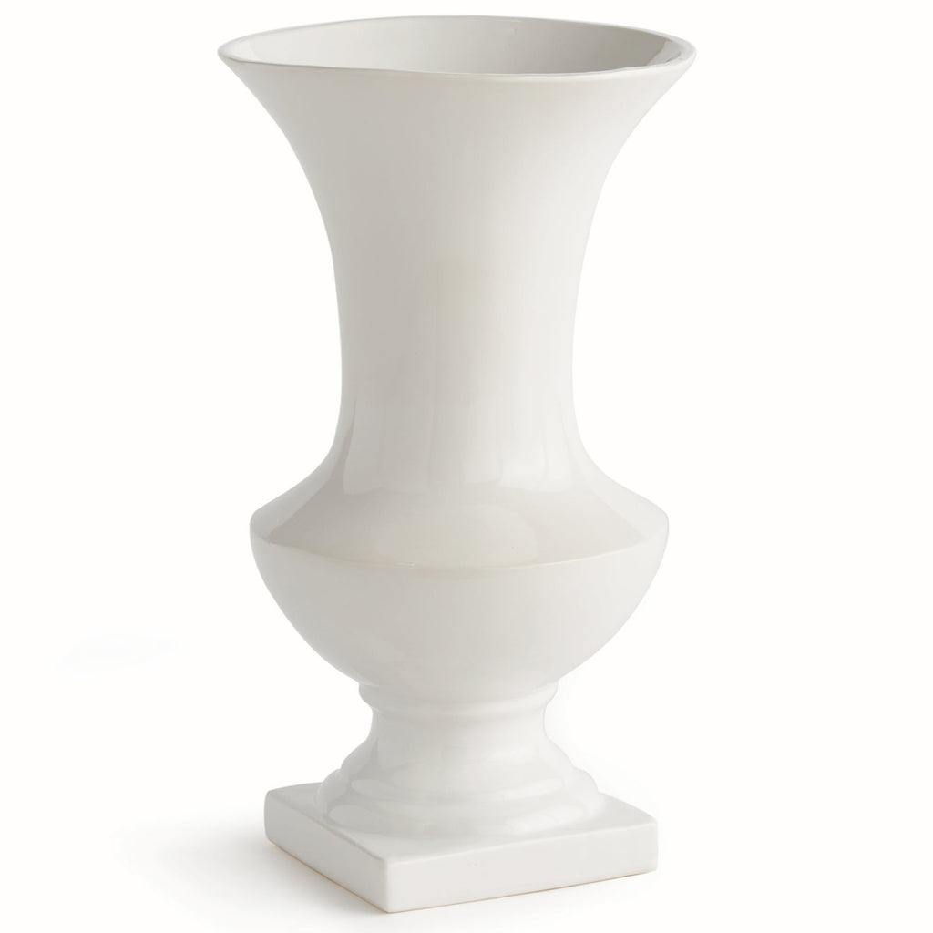 With a trumpet shape and square footed base, this classic decorative vase is made for the traditional space. Add some faux stems or display as is for a regal look.