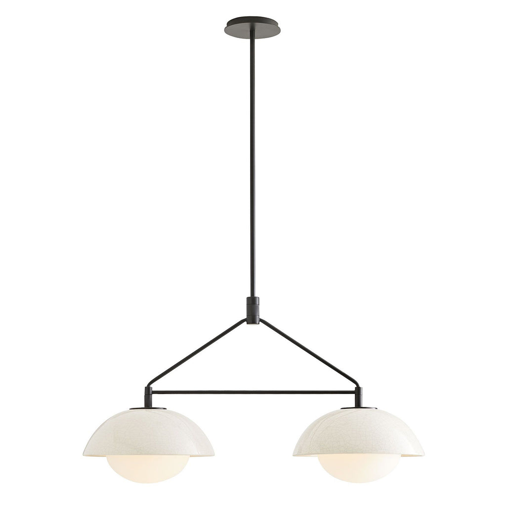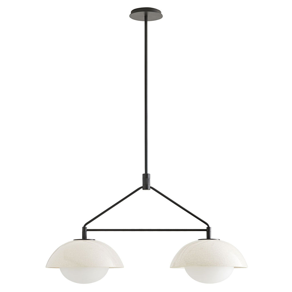 Arteriors Home lighting embodies the perfect balance of form and function, creating an ambiance that is both captivating and inviting. From sleek and minimalist lighting to more ornate and intricate fixtures, the Arteriors Home pendants offer something for every taste and style. The Arteriors Glaze collection is an ode to hand craftsmanship, inspired by beautiful glazed tableware and ceramics that reveal the hand of the maker. The Glaze Linear Pendant's super geometric blackened steel armature - elevated by textural knurled detailing - is paired with rounded ceramic shades in a unique ivory stained crackle glaze and soft frosted glass that casts a flattering glow. A showstopper designed to hold its own, the glaze pendant also offers endless installation possibilities when hung in multiples or with coordinating single glaze pendants for large spaces and public installations.