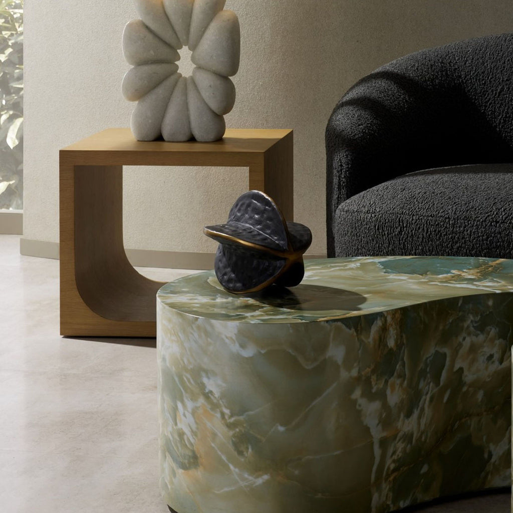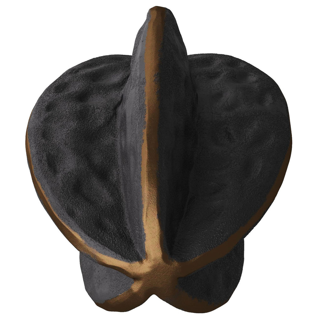 The distinctive ridges of a tropical starfruit influence a large-scale object. At home atop any stack, its textural cast aluminum is bronze finished and detailed with accents of antique brass. Finish will vary.