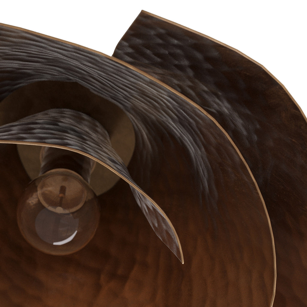 The captivating spirals found in sacred geometry inspired our spiral-shaped Arteriors Arden Ceiling Mount. Its organic form projects light in between layers, allowing it to play on the vintage brass surface. This clever design can be used as a flush mount or as a sconce. Damp-rated, although limited covered outdoor conditions may affect finish. Finish will vary.