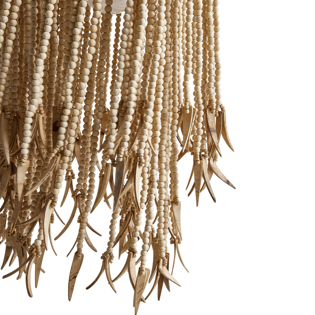 A smaller version of our classic Arteriors Baja chandelier, this natural design finds balance and defines beauty with organic materials. The layered concentric construction is crafted from natural wood and coconut beads strung along a painted white iron frame showcasing a mélange of neutral hues. Coconut shell talons hang from the wood bead strands. Though light and airy, this vertical pendant establishes a unique and natural presence. Finish will vary.