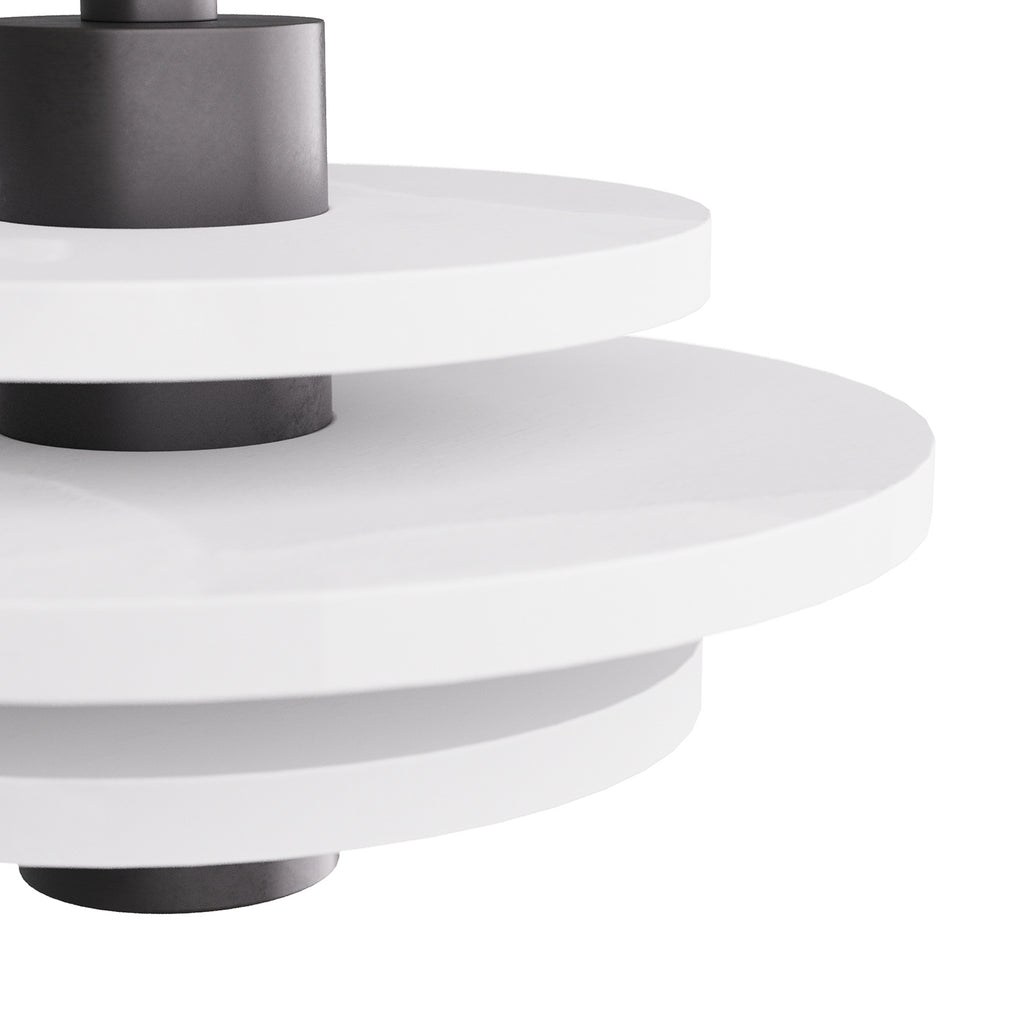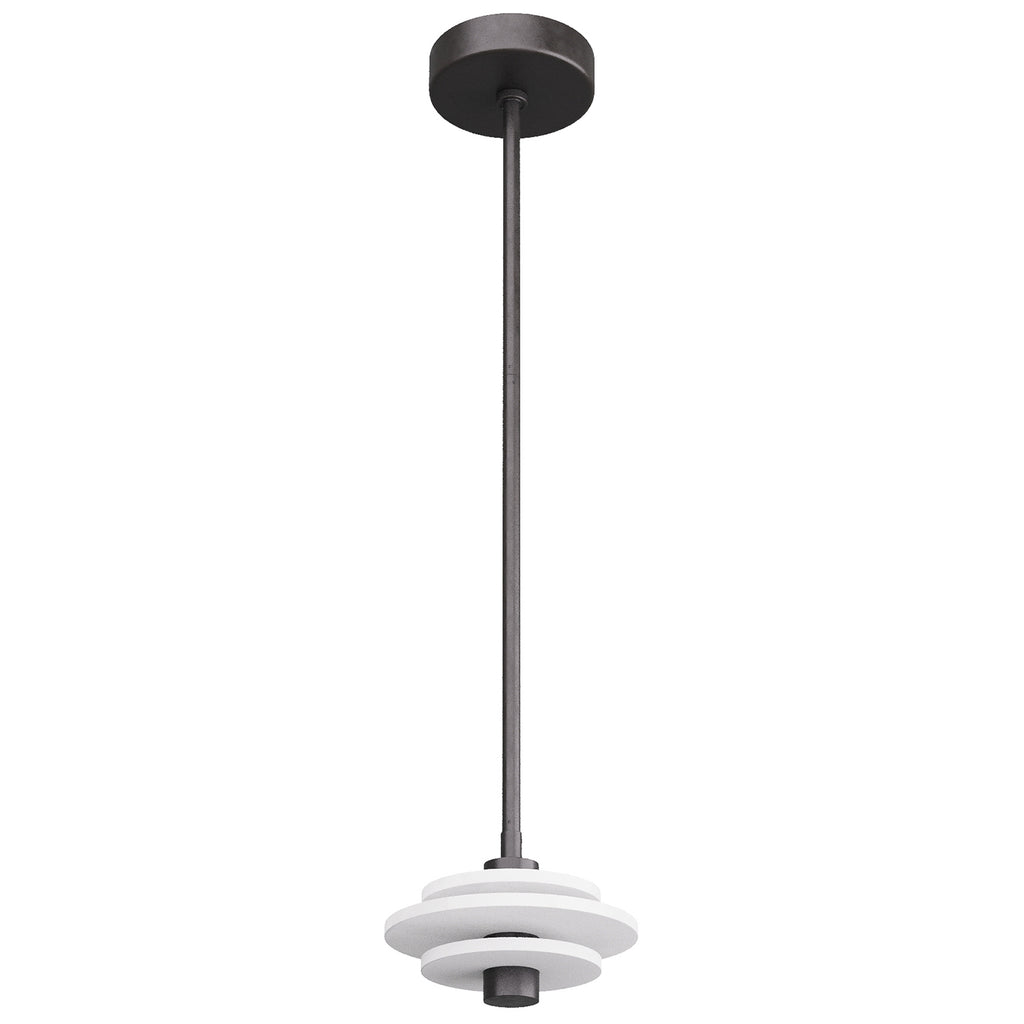 The simple forms of elementalism provoked the design of the Arteriors Bevins Pendant. Stacked rings of white alabaster are pierced by the support of an english bronze finished iron pipe. Integrated led provides a rich glow through each ring of alabaster. Damp-rated, although limited covered outdoor conditions may affect finish. Finish will vary.