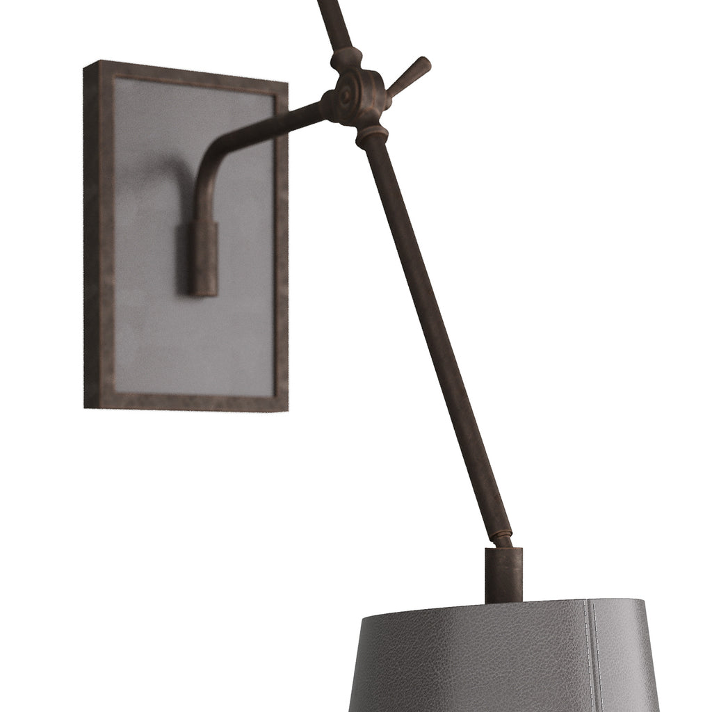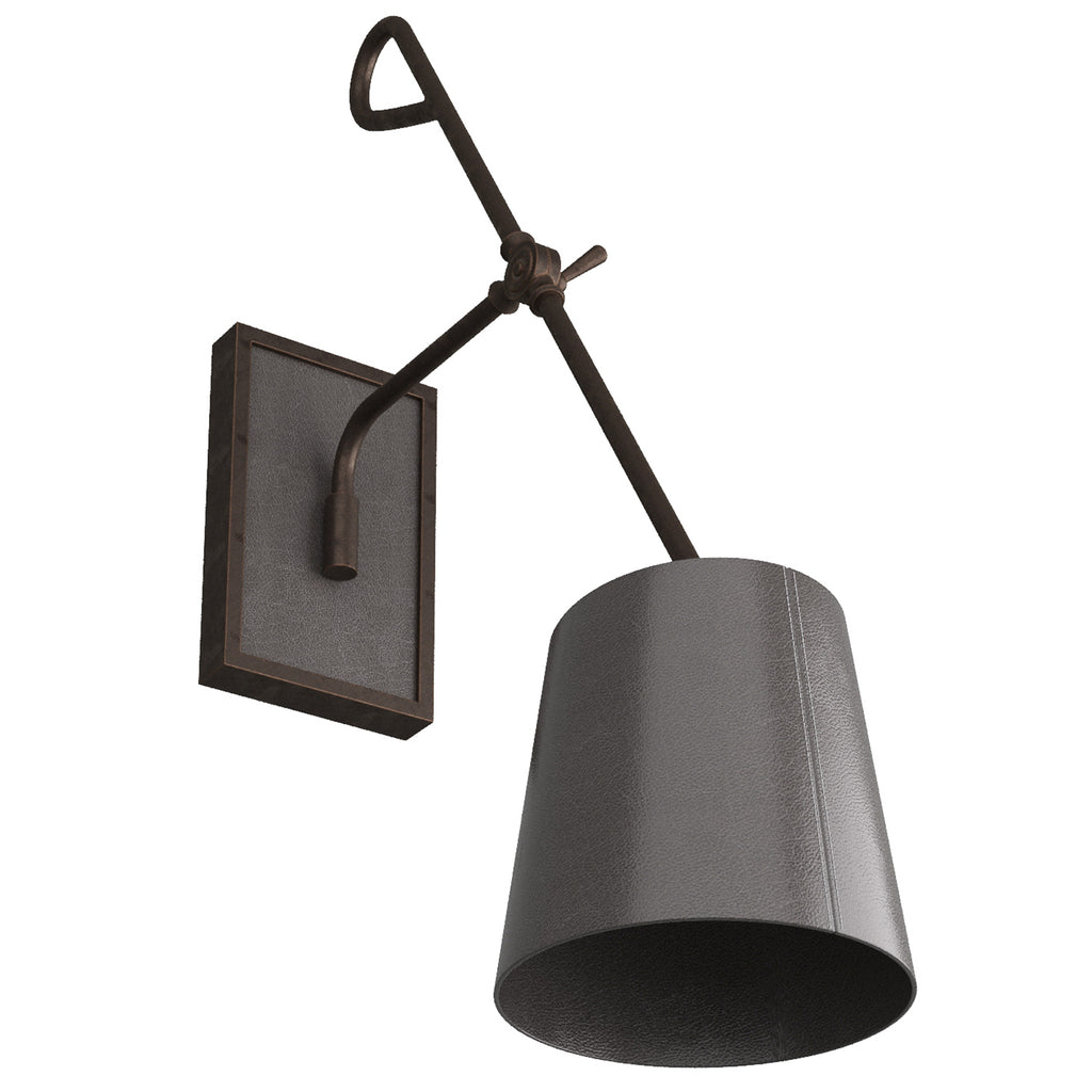 The ideal fixture for the reader in the house, the simplicity of the Arteriors Birdwell Wall Sconce was made to be a constant companion for your favorite chaise. A gestural english bronze steel arm reaches out from the graphite leather shade with a white cotton double topstitch for interest. The lamp is adjustable to move the light exactly where you need it most. Damp-rated, although limited covered outdoor conditions may affect finish. Finish will vary.