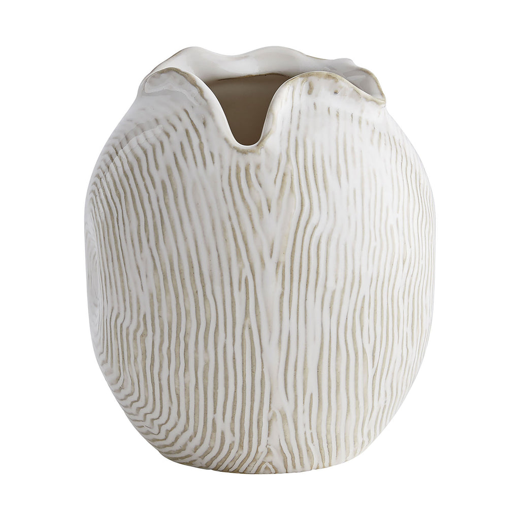 Deliver organic elegance to a tablescape with this set of ceramic vases. Each is different in shape and size and features a white-wash finish that creates faux bois texture. The mouth of each vase is organic in shape and tear-like—shaping a visual point of interest. This watertight trio is ideal for boasting various bouquets but is just as stunning as a grouped accent for a console table or bookshelf. Finish will vary.