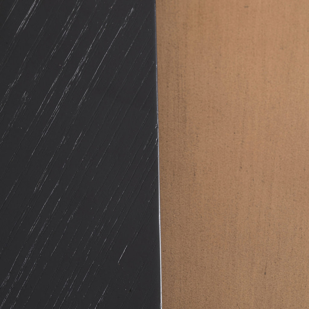 Eye-catching geometric design—one ebony stain, one gold leaf table—crafted from oak wood for intriguing form and versatility. Designed by Jay Jeffers; finish will vary.