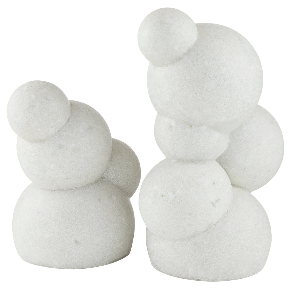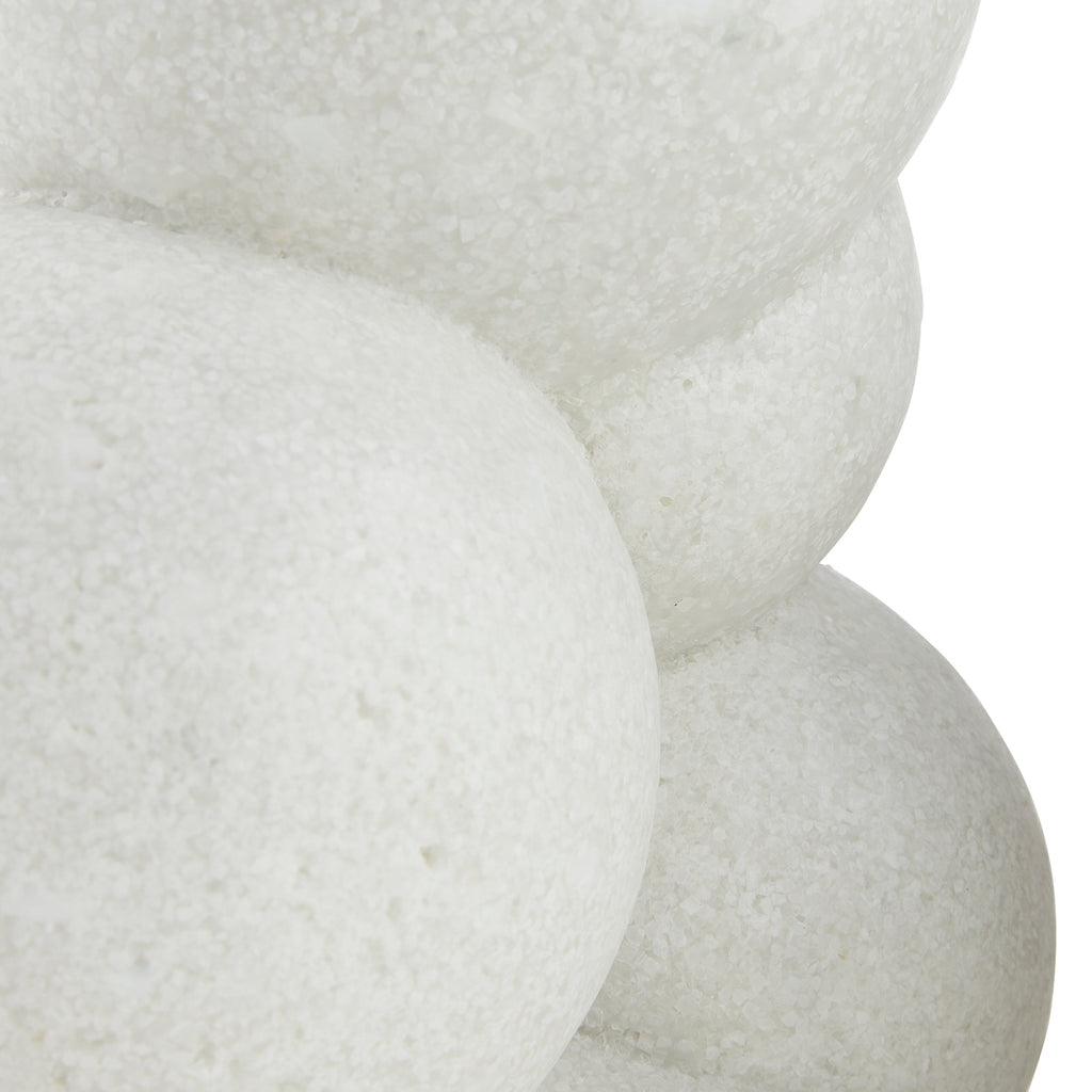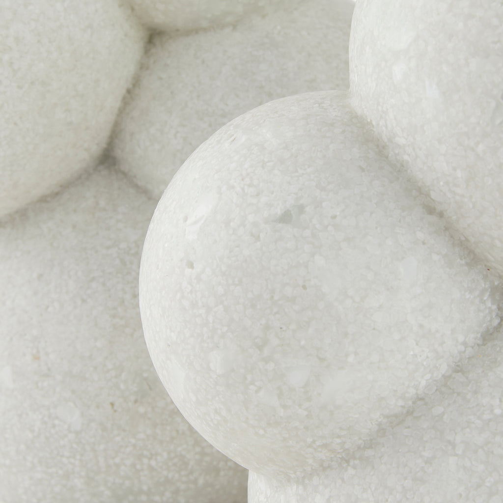 Polished spheres of ivory glass stone composite stack to recall molecular structures or organic bubbles. Each sculpture is equally impactful when displayed alone or paired. Finish will vary.