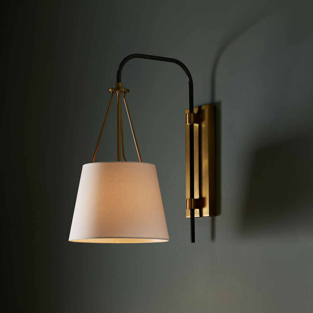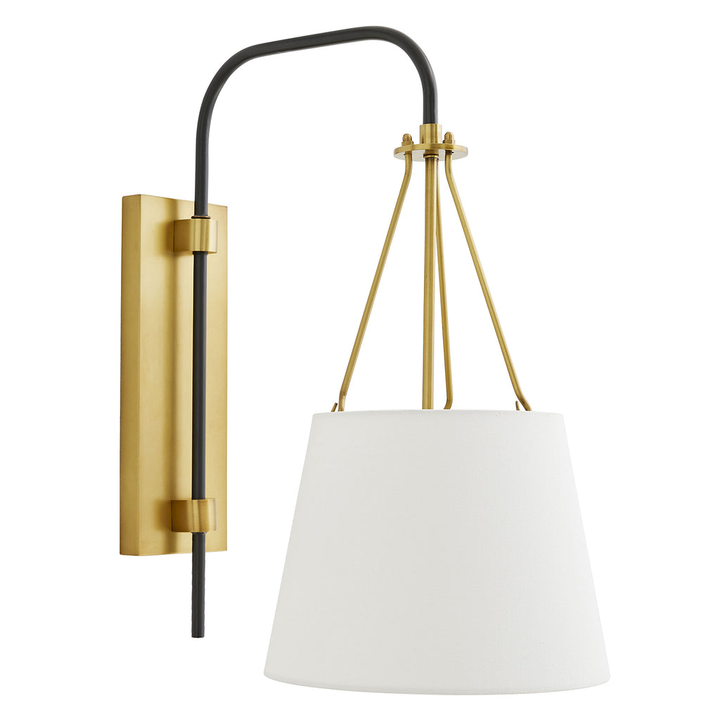 Arteriors Home lighting embodies the perfect balance of form and function, creating an ambiance that is both captivating and inviting. With an emphasis on functionality, versatility, and visual appeal, the Arteriors Home wall sconce fixtures embrace both form and function, elevating any environment with timeless allure. Classic style meets modern ingenuity with the Arteriors Franklin Sconce. A steel chandelier-style hanging detail in an antique brass finish suspends a white linen shade delivering traditional elegance to a room. Extending from a bronze-finished plate is an arched arm that swings making this an ideal lighting design for a bedside or reading nook.