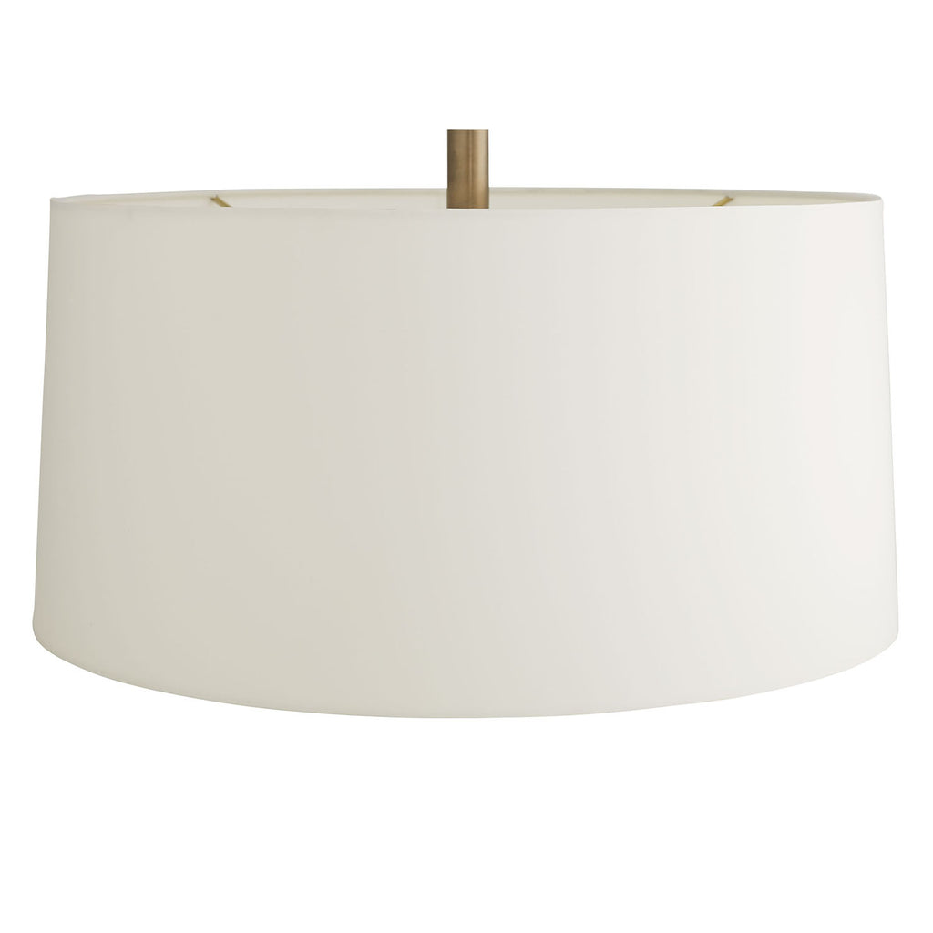 Sleek. Simple. Sophisticated. The classic aluminum column lamp is updated with a thick antique brass band atop a bronze-finished base, topped with an ivory microfiber drum shade with matching lining; finish will vary.