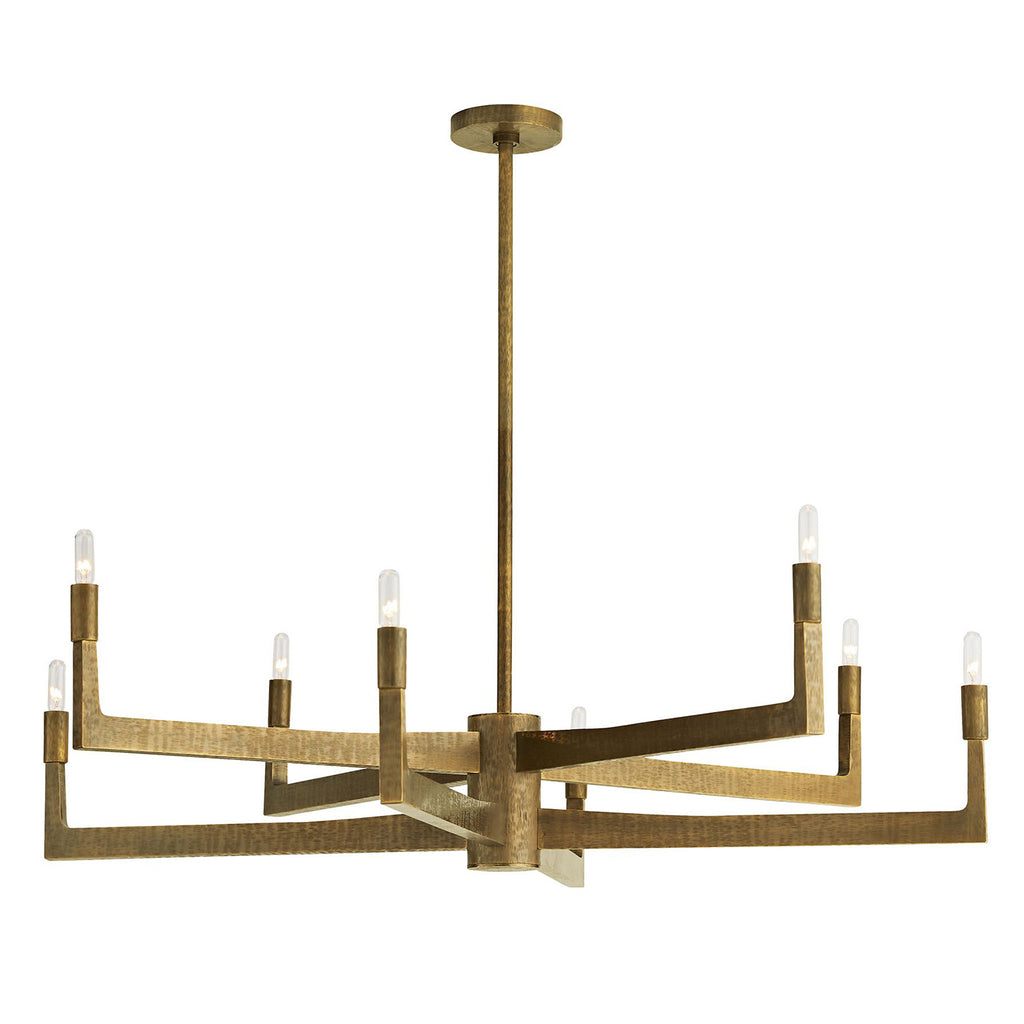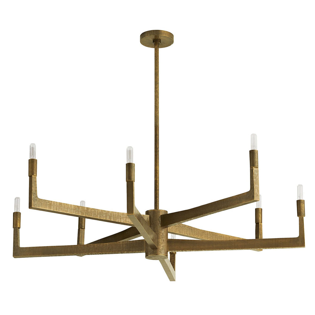 Arteriors Home lighting embodies the perfect balance of form and function, creating an ambiance that is both captivating and inviting. With an emphasis on superior craftsmanship, Arteriors ensures that their chandeliers not only illuminate the room but also make a statement. Sleek, modern and unexpectedly full of texture, the Arteriors Griff delivers an unrivaled dynamic to a space. Its slender profile is composed of solid steel, which has been finished in english bronze and chiseled with a chattered detail that lends a handcrafted character to the piece. A focal point for any modern setting, though we see this chandelier styled over a dining table. For a larger tablescape, try hanging in multiples to maximize impact. Finish will vary. Damp rated, though limited outdoor conditions may affect finish.
